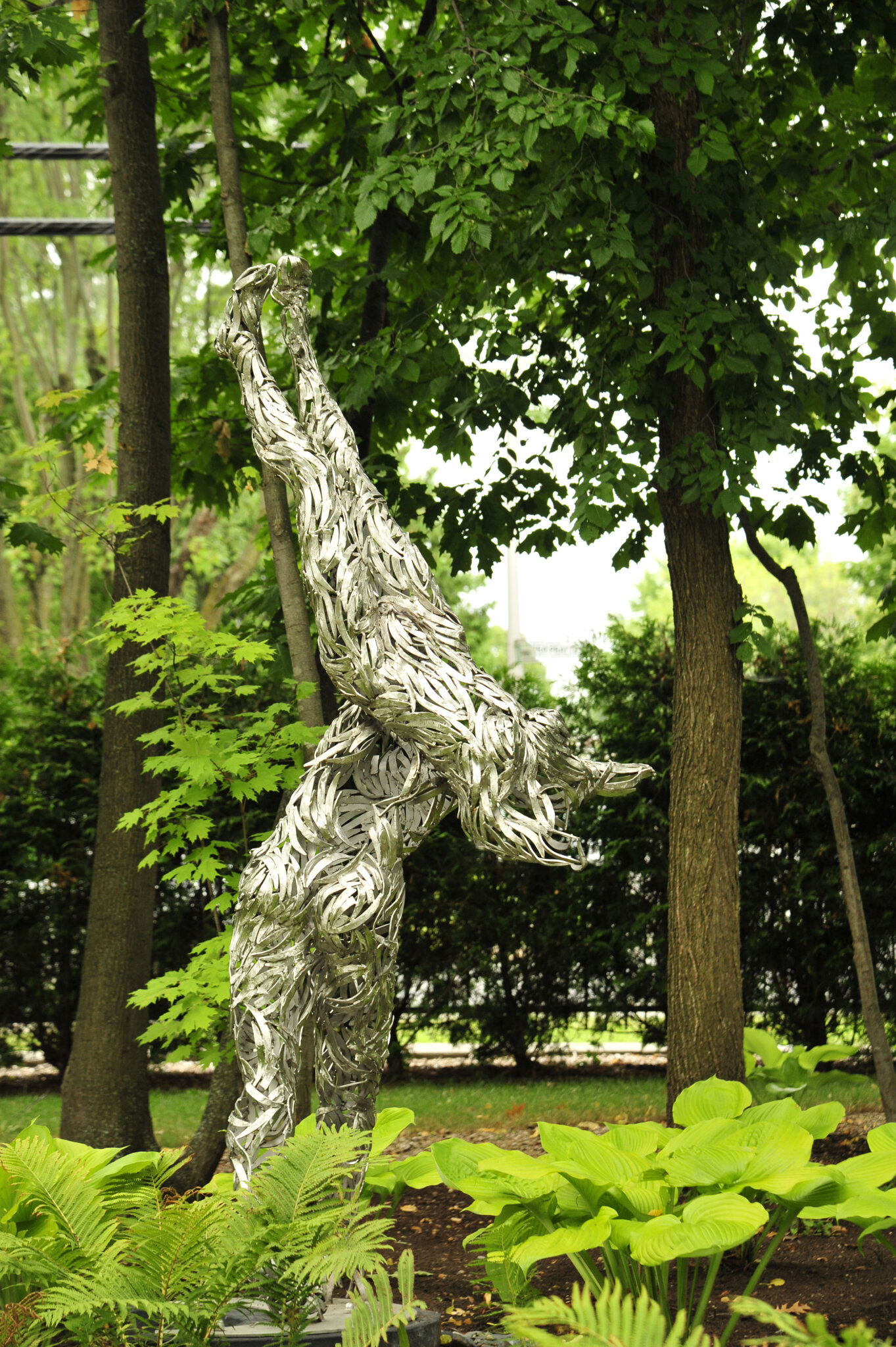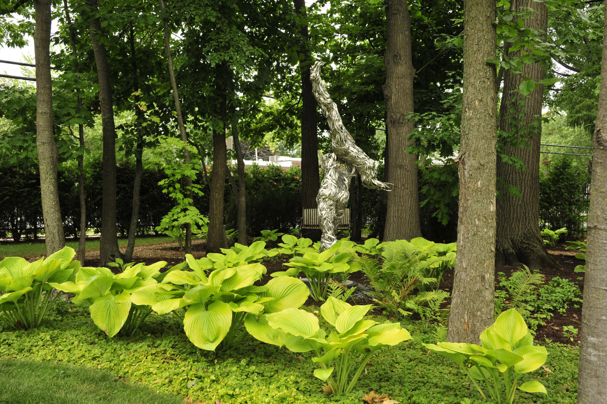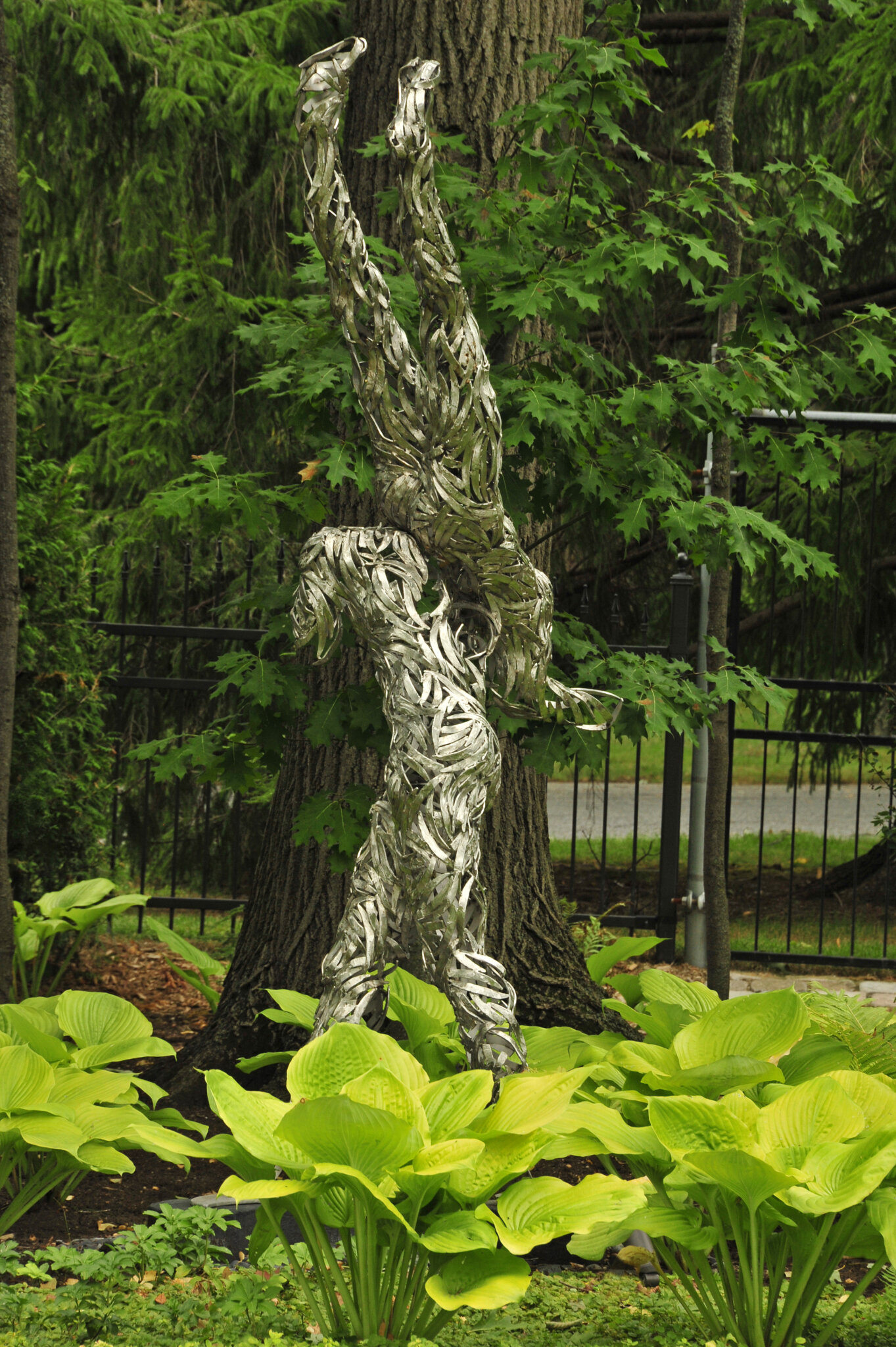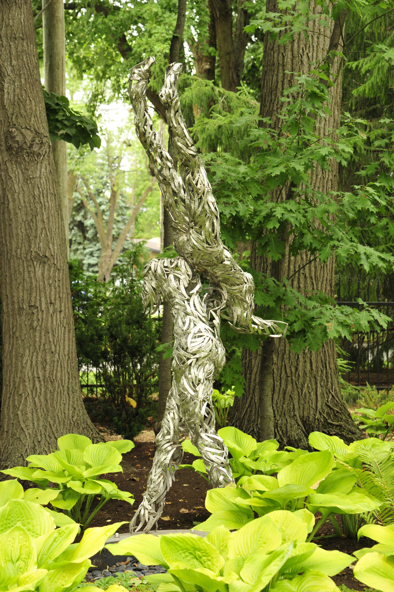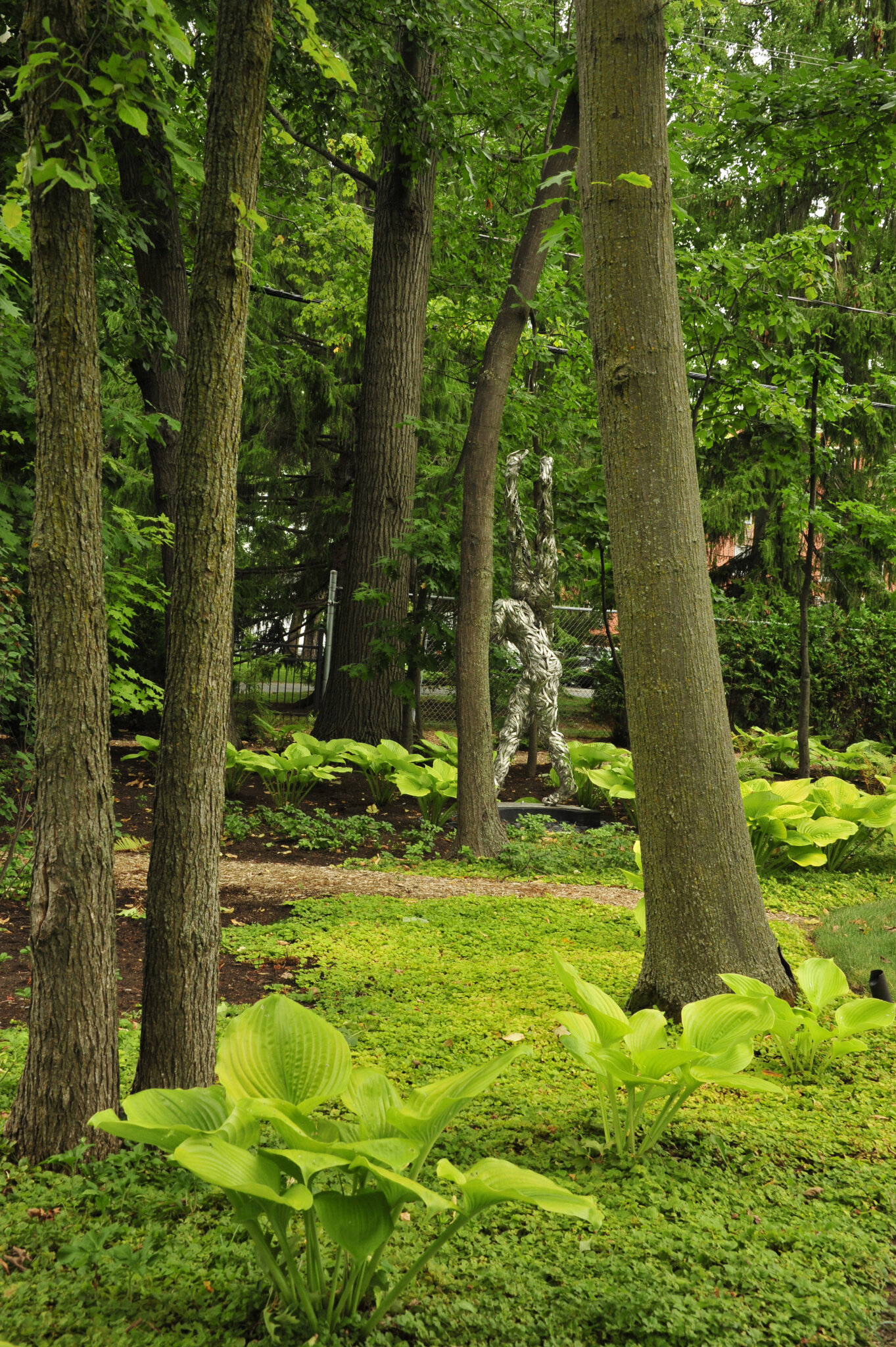 Cette œuvre est une œuvre d’art crée par le sculpteur Jean-Louis Emond que nous avons intégrée à un espace sous-bois aménagé de grands massifs de végétaux vivaces et résistants.