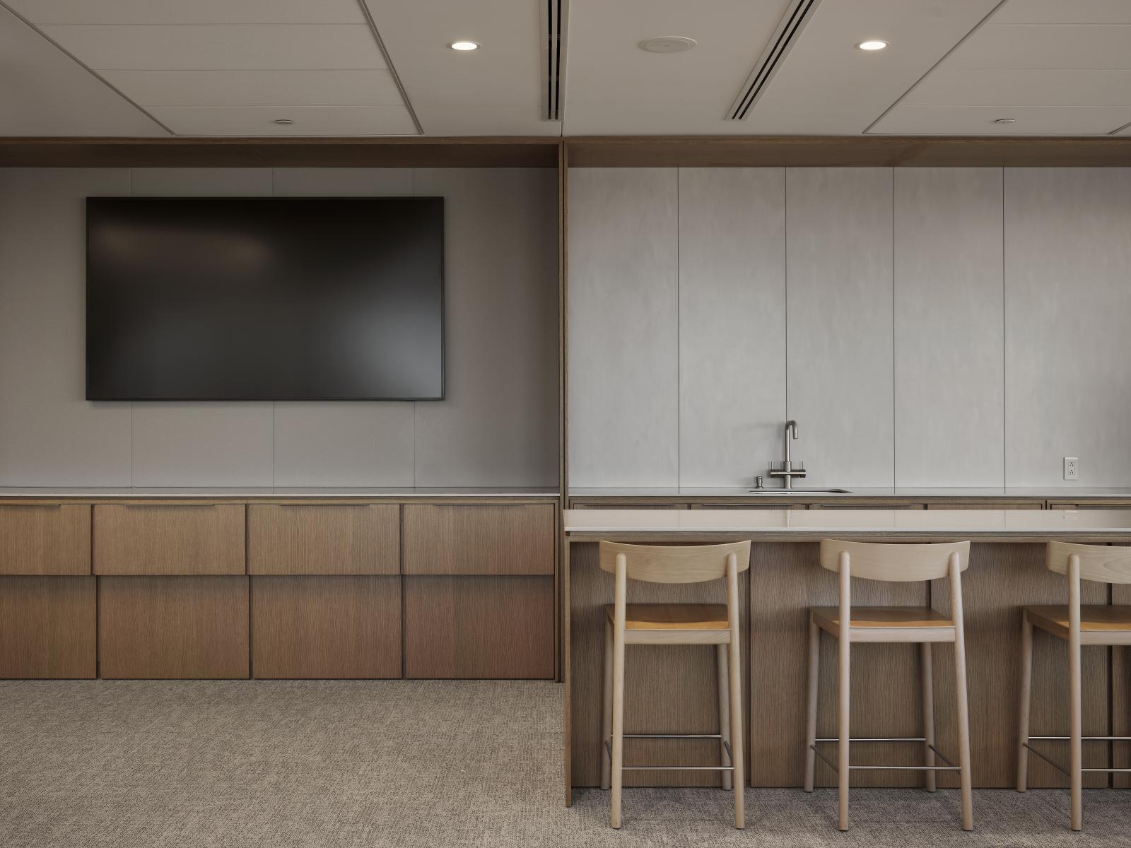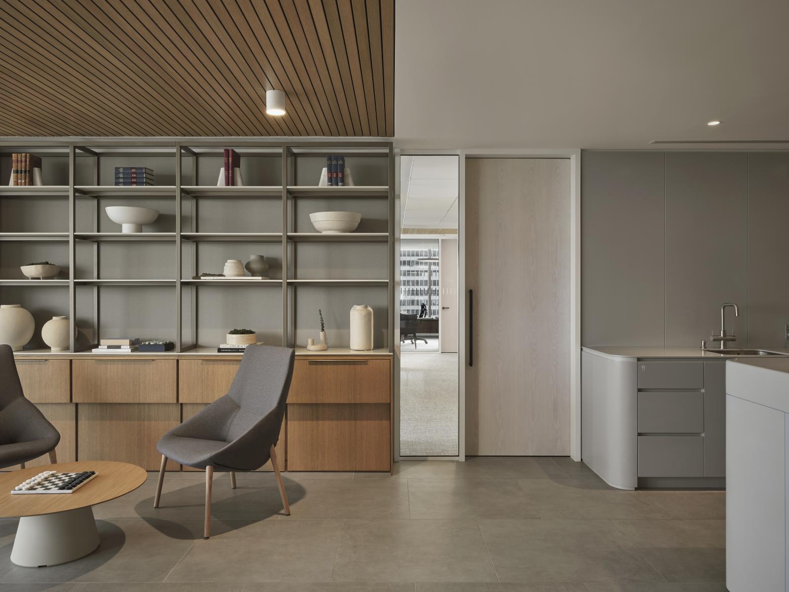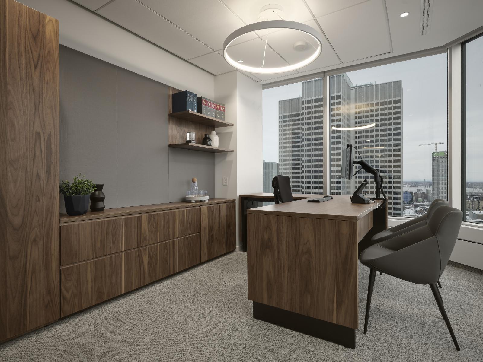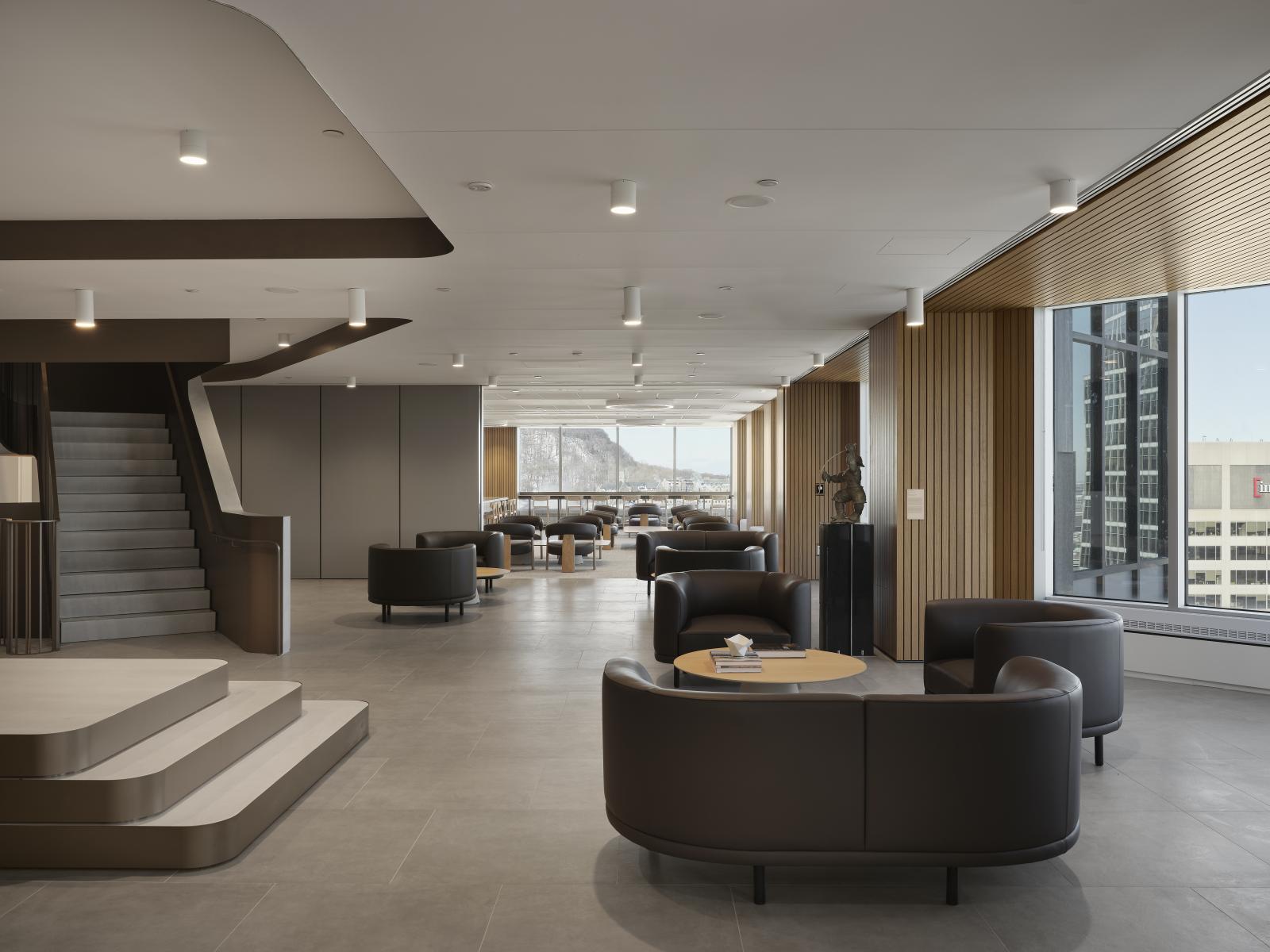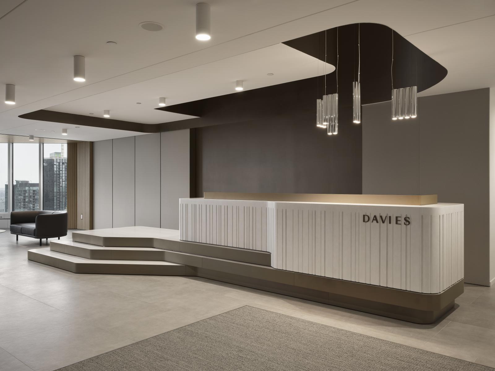 La rénovation de tous les étages, incluant les aires communes, renforce le caractère unique de Davies par l’élégante sobriété et la finesse des installations. Celles-ci optimisent la gestion de l’espace ainsi que la qualité lumineuse, acoustique, ergonomique et inclusive des lieux dans le souci d’offrir des conditions idéales aux membres, aux collaborateurs et aux clients qui les fréquentent. Orientée par les valeurs d’authenticité et de collaboration du cabinet, la configuration des nouveaux bureaux intègre un éventail d’espaces de travail partagés et d’opportunités de fraternisation au sein de zones conviviales communes. Éveillés à l’évolution constante du milieu professionnel et de ses pratiques, les bureaux se dotent d’une technologie adaptée et évolutive qui alloue le jeu nécessaire à une redéfinition éventuelle des lieux.