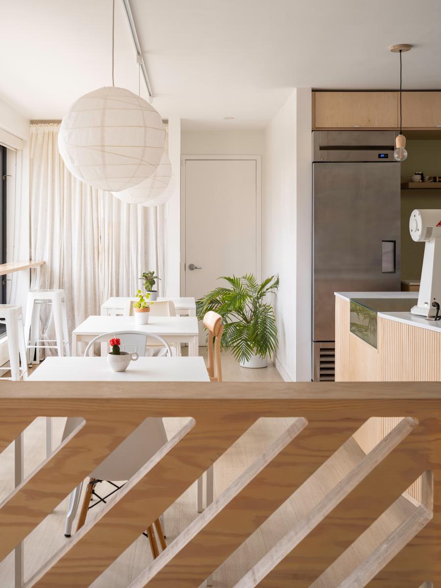 Des suspensions avec accents en bois diffusent une lumière chaude et accueillante, tandis que de grandes lanternes en papier de riz sur un rail ajoutent un contraste textural ludique. Ces lanternes, ainsi que les tables, peuvent être ajustées pour s'adapter à différentes configurations pour des événements de dégustation, permettant à l'espace de passer facilement de rencontres décontractées à des rassemblements spéciaux. Plus qu'un simple café, Lion Coffee sert de centre communautaire—un lieu où les clients peuvent profiter de leurs rituels quotidiens, qu'il s'agisse d'un café tranquille le matin ou d'un moment partagé avec des amis.