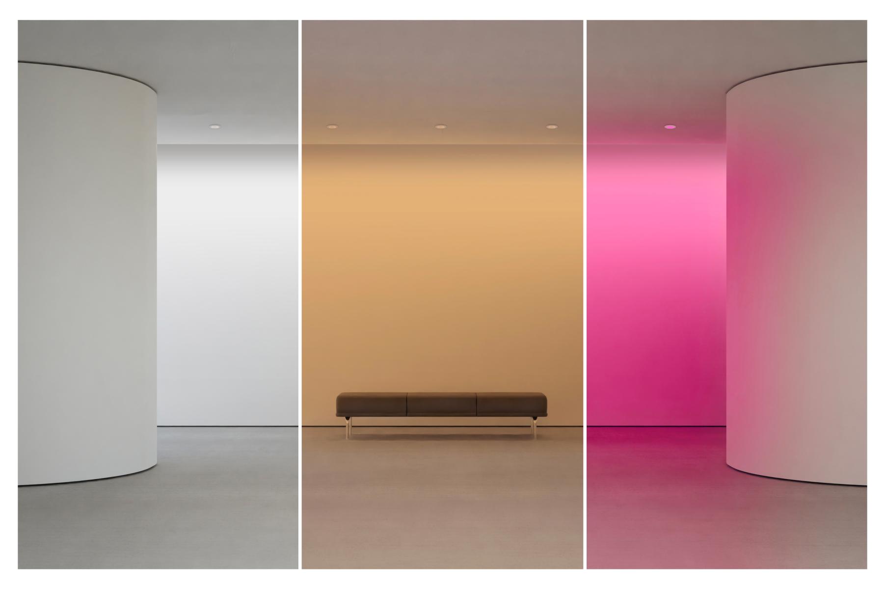Opticolor+ was conceived to emulate the natural progression of daylight, from cool early morning tones to bright midday light and warm sunset hues. It supports dynamic transitions between white tones and full-spectrum colour, enabling environments that respond to time of day, user activity, or emotional tone.