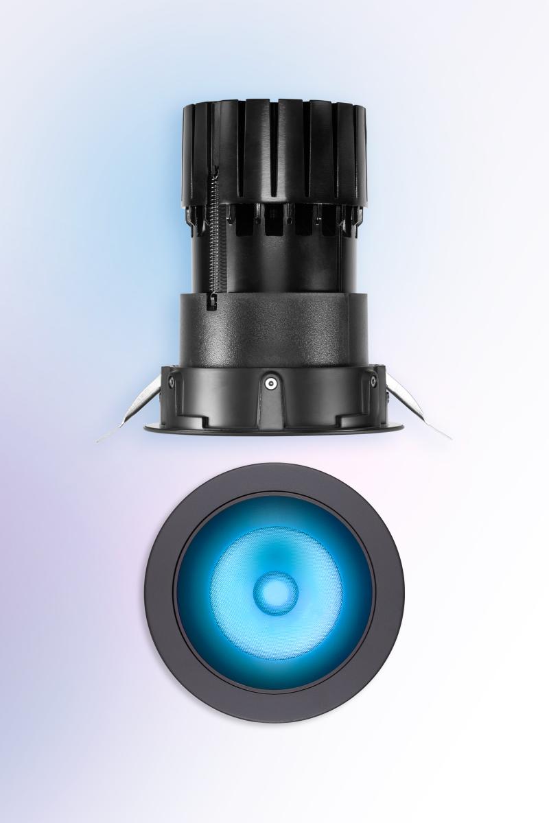 Lumenpulse has developed the Lumencore Recessed Opticolor+, the first recessed interior luminaire to combine three advanced lighting technologies—Premium White, Dynamic White with Dim-to-Warm, and Dynamic RGBW Colour—within a single fixture. This integration allows lighting designers and specifiers to address a broad range of applications and atmospheres without changing luminaires.