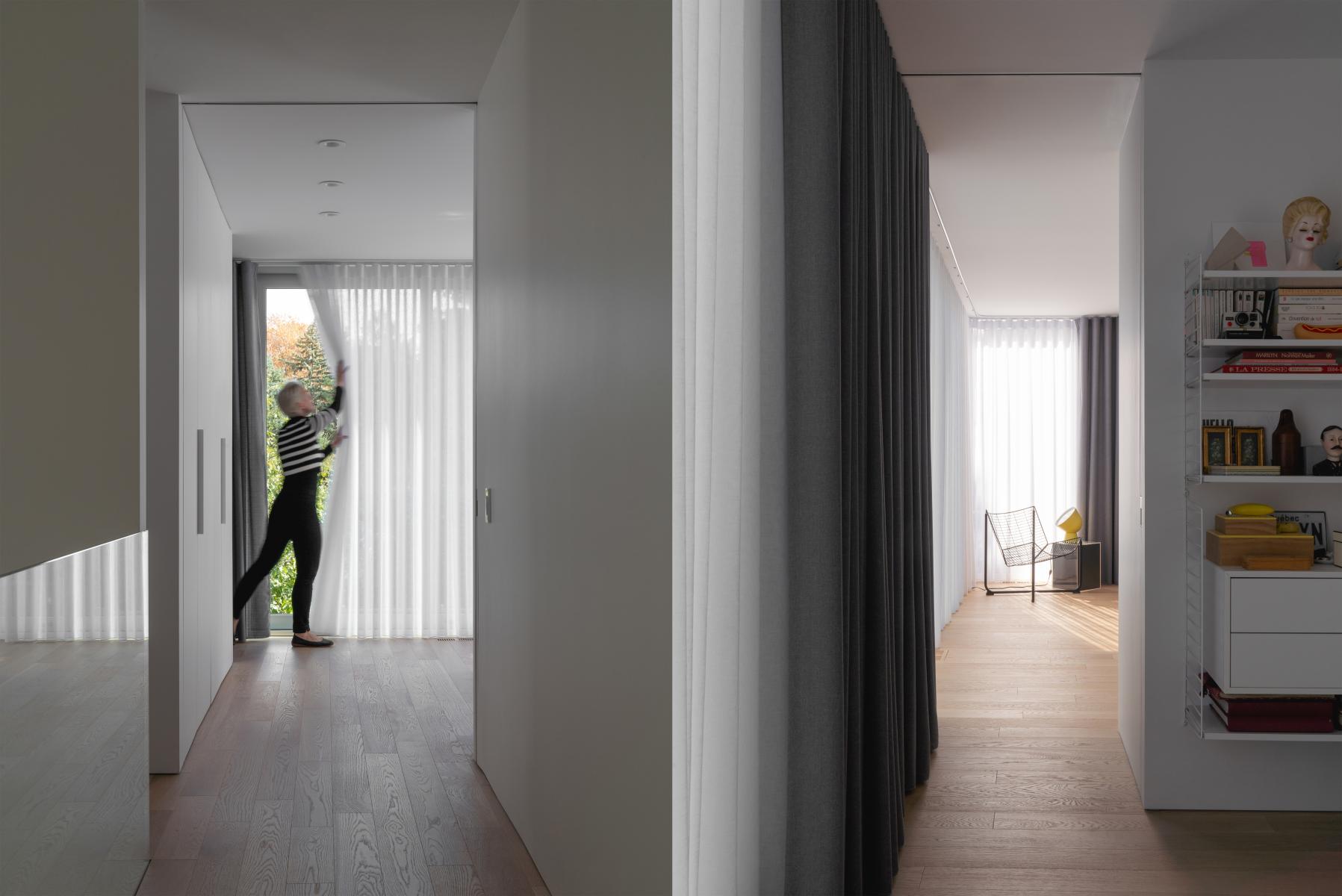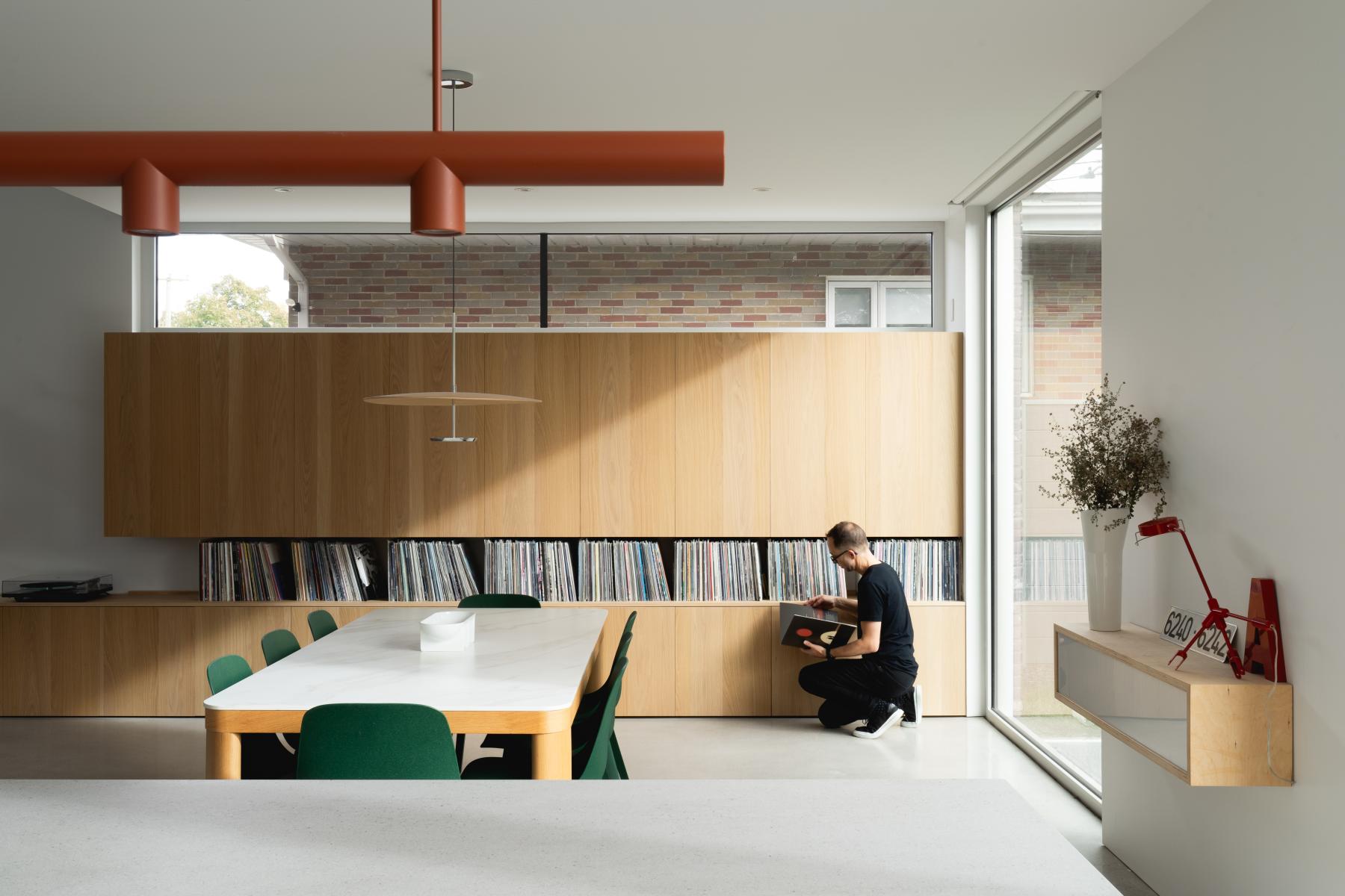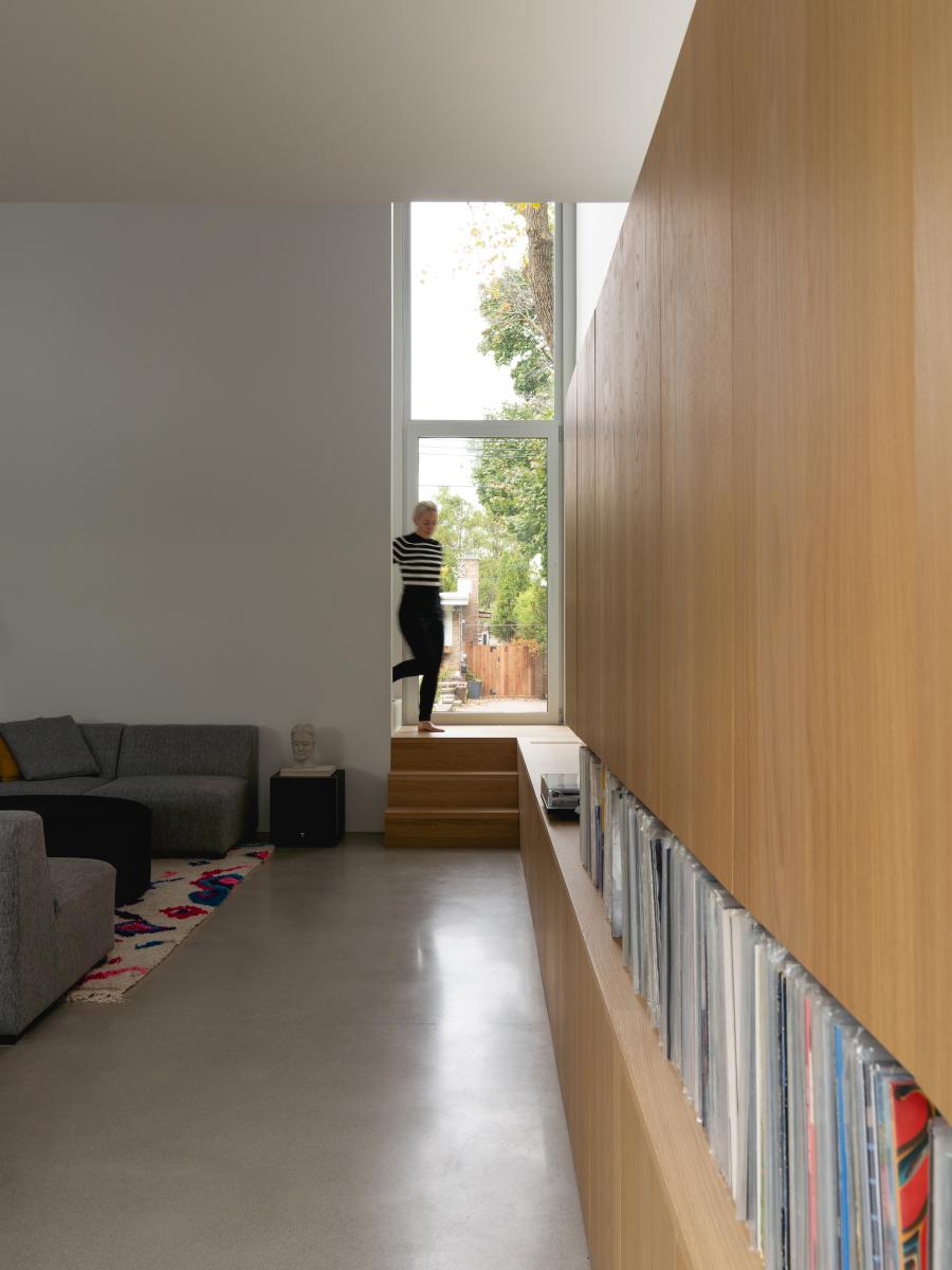 La MAISON SAURIOL est d’ailleurs née d’une belle complicité entre les architectes et les clients, elle, publicitaire et lui, preneur de son et mixeur, tous deux réputés dans le milieu artistique montréalais. Le défi consistait à concevoir une maison qui soit à la fois un espace de vie et de création. Ensemble, ils ont ainsi revisité la façon d’habiter et de travailler à la maison, en articulant le projet autour de ce double usage pour créer un lieu de vie poétique, à la fois inspirant et apaisant. La séquence des espaces a ainsi été pensée pour favoriser la circulation et la superposition des usages. La palette de couleurs est sobre, le mobilier est finement intégré et les vastes ouvertures laissent entrer la nature tout en préservant l’intimité des habitants. Autant de facteurs qui participent à la douceur et à la cohérence du lieu.