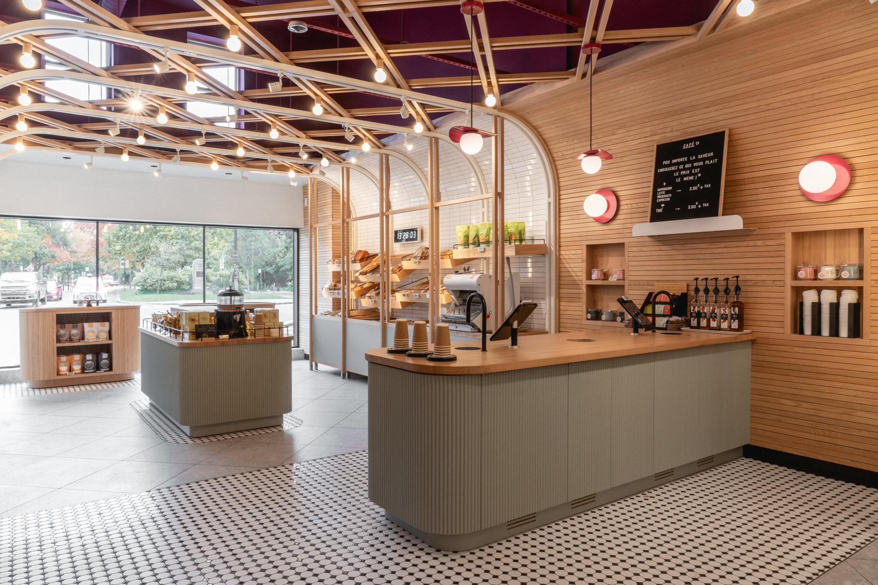 Les propriétaires de Mamie Clafoutis souhaitaient transformer l’espace et le fonctionnement de leur boulangerie sur la rue Saint-Denis, dans le Plateau-Mont-Royal. Le mandat : rafraîchir l’aménagement, doubler la surface ouverte au public, et réserver la cuisine et la mezzanine au personnel.