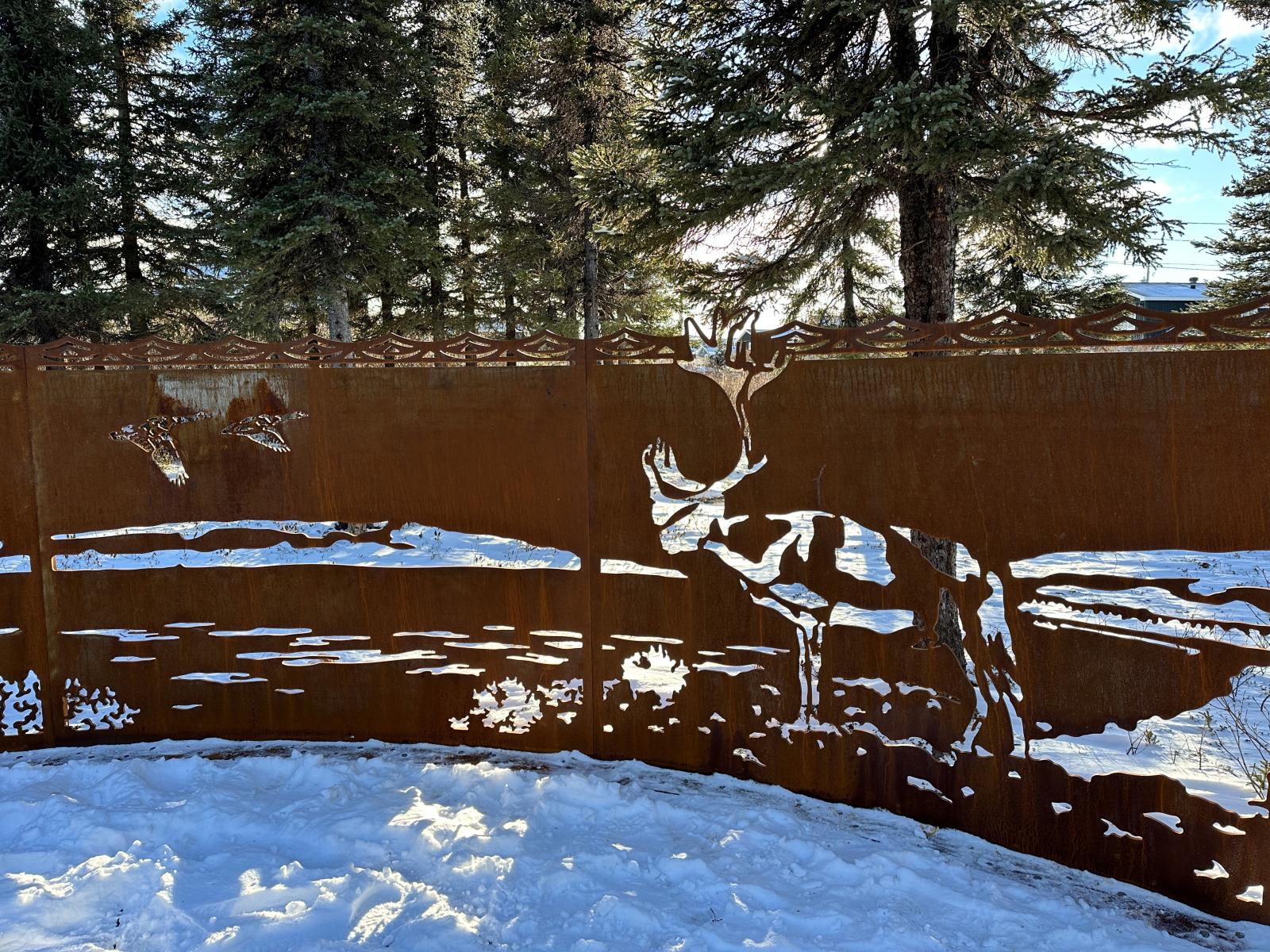 D'importantes références culturelles ont été intégrées dans le projet : des sculptures de caribous en hommage aux troupeaux qui traversaient autrefois ce territoire, et une fresque narrative reflétant les valeurs de la communauté par le biais d'animaux emblématiques, d'éléments significatifs du territoire, et de références à l’histoire de la nation. Le projet fait écho à la palette de matériaux de son contexte, du bois d'œuvre de mélèze aux pierres des carrières naskapies voisines, en adoptant le principe d'utilisation de "matériaux locaux". Plus qu'une promenade, il s'agit d'un espace sûr pour partager des valeurs, une plateforme pour l'éducation et la santé communautaire. « C'est une vision porteuse de la promesse et de la fierté de notre peuple, qui honore la terre et reflète les valeurs culturelles que nous chérissons. »2