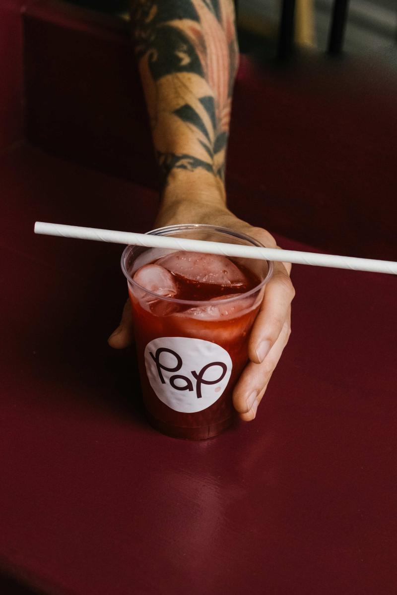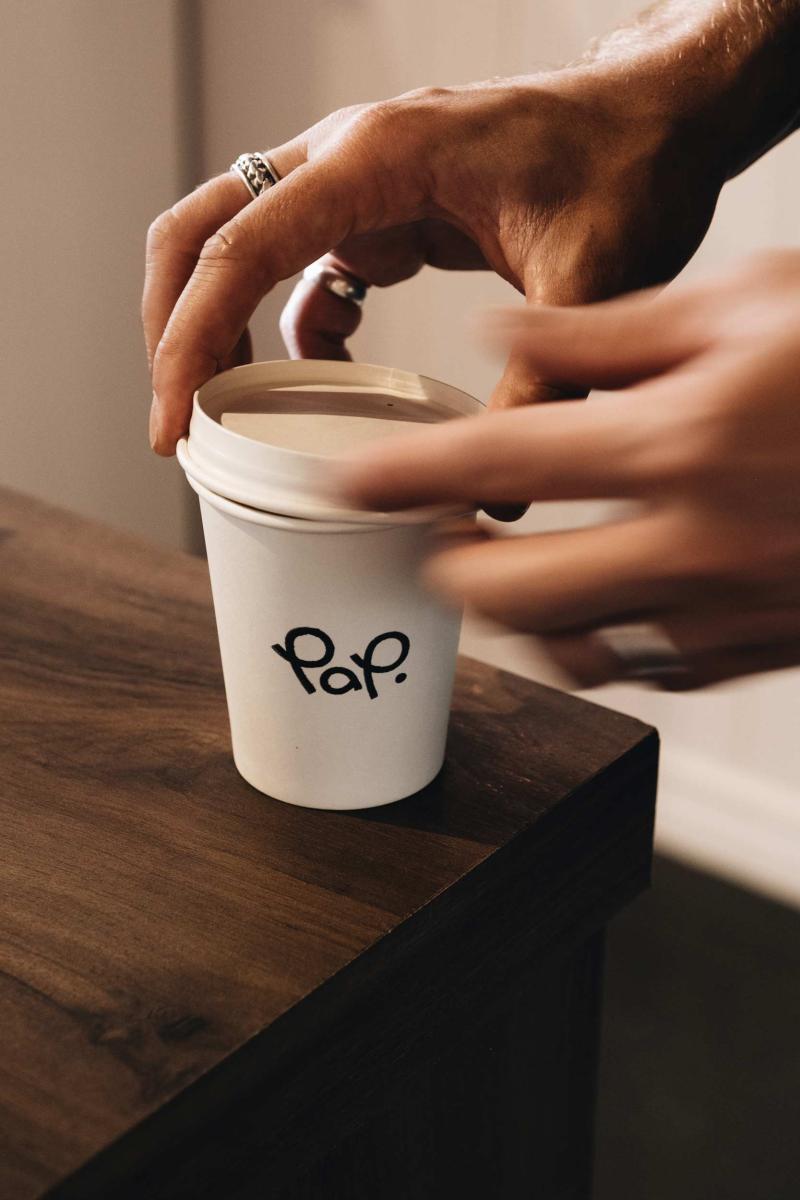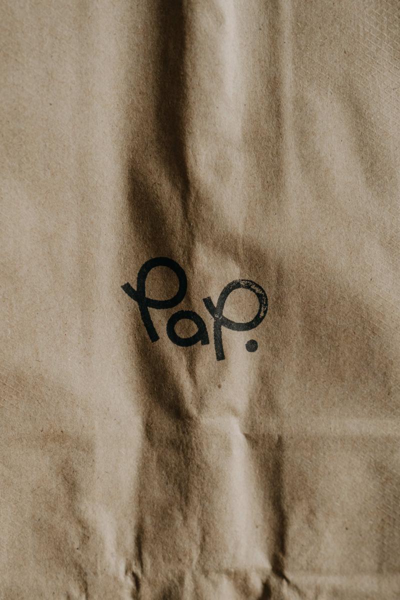Le logo reflète la personnalité du lieu : ludique, humain et pour tous.tes. Une version du logo plus courte (Pap.) est utilisée pour tout ce qui est pour emporter et sert également de surnom pour les habitué.e.s.