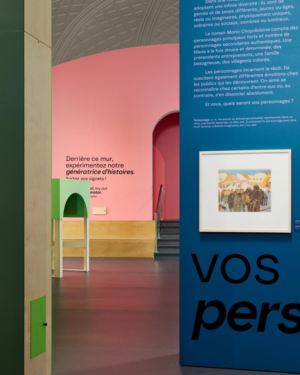 C’est dans ce contexte très particulier du déménagement du Musée que s’est inscrit le mandat confié à La bande à Paul à l’automne 2022. Débuté en 2020, ce grand projet de relocalisation était déjà avancé, mais il restait encore beaucoup à faire au moment de l’entrée en scène de notre équipe. Précisons qu’il s’agissait de déplacer la maison Samuel-Bédard, où a séjourné Louis-Hémon en 1912, puis de loger le Musée Louis-Hémon dans l’église Saint-Édouard, désacralisée pour sa nouvelle vocation. Précisons aussi que l’Espace Péribonka est un complexe incluant les bureaux de la mairie et la bibliothèque municipale.