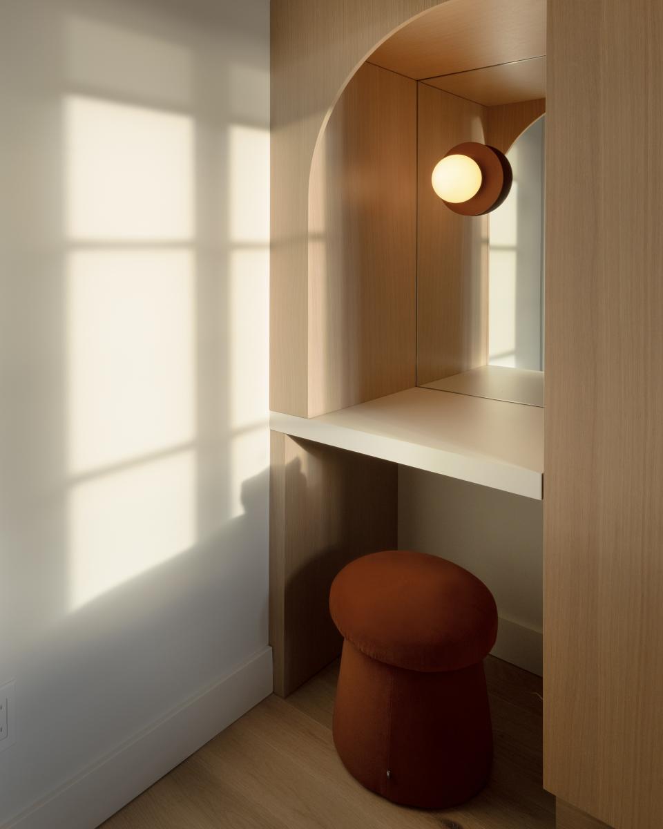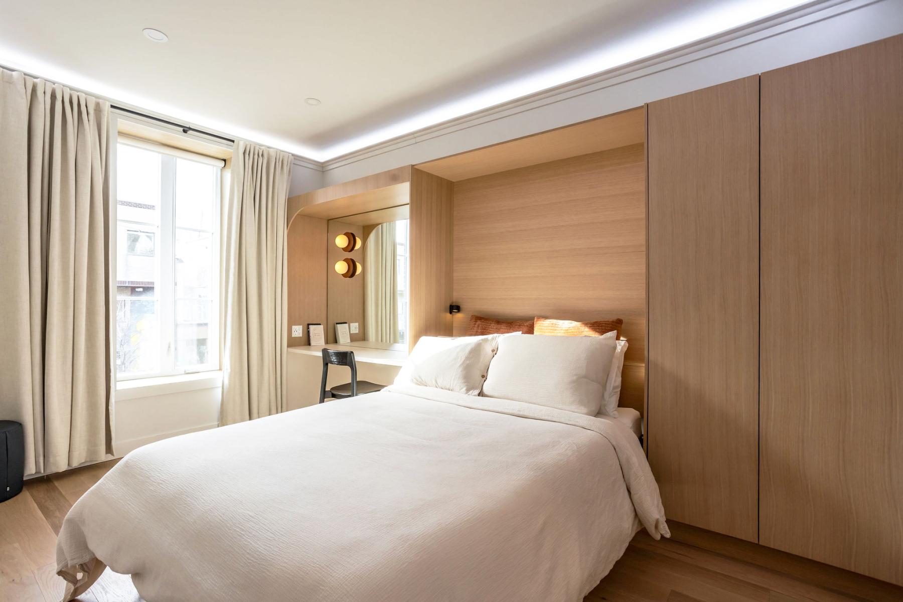 Mobilier sur mesure, intégration ingénieuse de bureaux et de lits escamotables, optimisation maximale des espaces réduits : chaque mètre carré est valorisé. Le choix de matériaux nobles, durables, doux au toucher et lumineux crée une ambiance propice au repos comme au travail, favorisant une sensation de sérénité et d’équilibre.