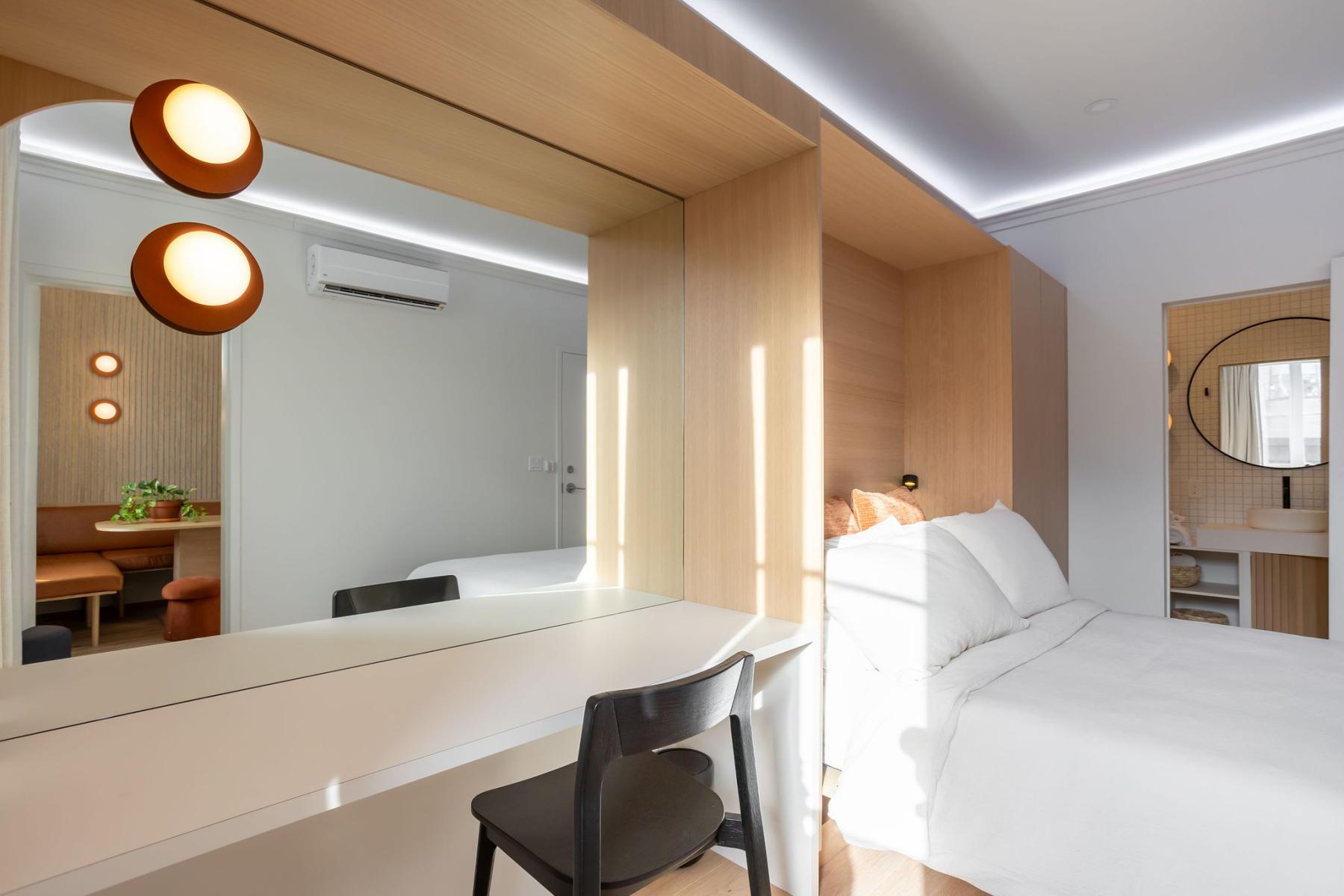 Ces suites hôtelières conjuguent harmonieusement confort et praticité, en faisant le choix parfait pour les voyageurs d’affaires ou les séjours de courte durée. Chaque chambre est conçue pour favoriser un sommeil profond : luminothérapie, rideaux occultants, literie haut de gamme et salle de bains privée aux finitions soignées, agrémentée de produits écoresponsables.