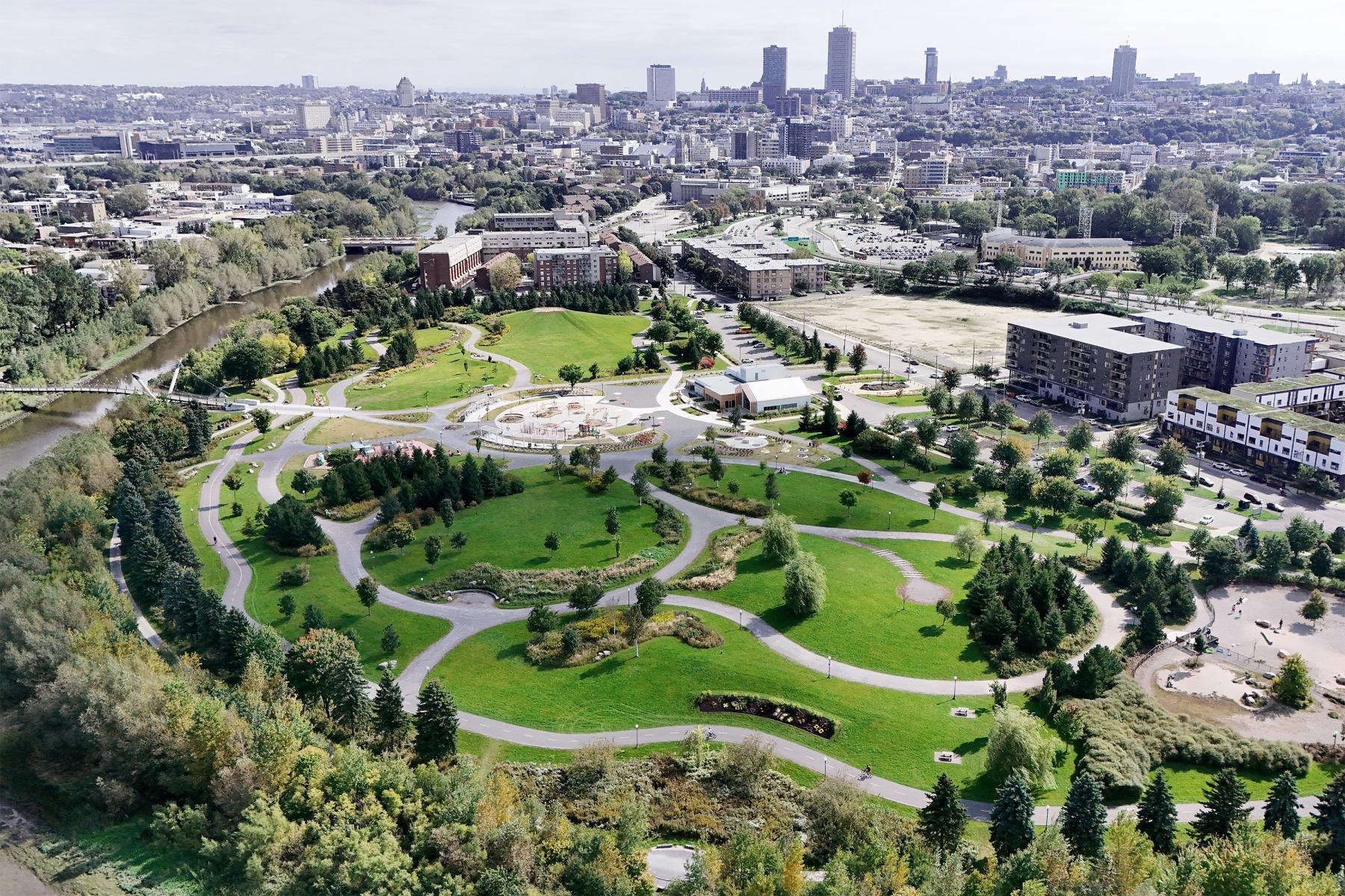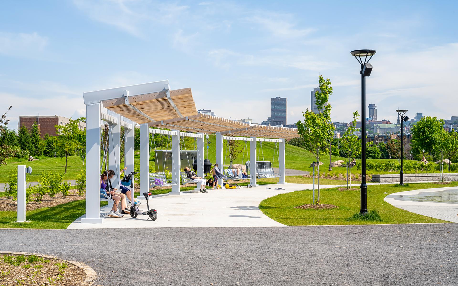 Le réaménagement du parc de la Pointe-aux-Lièvres aux abords du méandre de la rivière Saint-Charles est une intervention paysagère qui a complètement métamorphosé la dynamique du secteur passant d’un espace de transit à un lieu de destination 4 saisons prisé de tous!