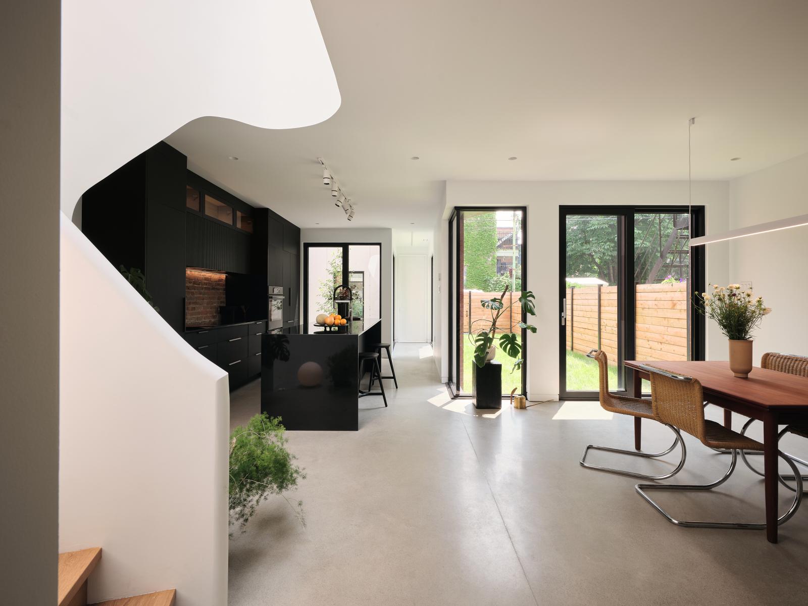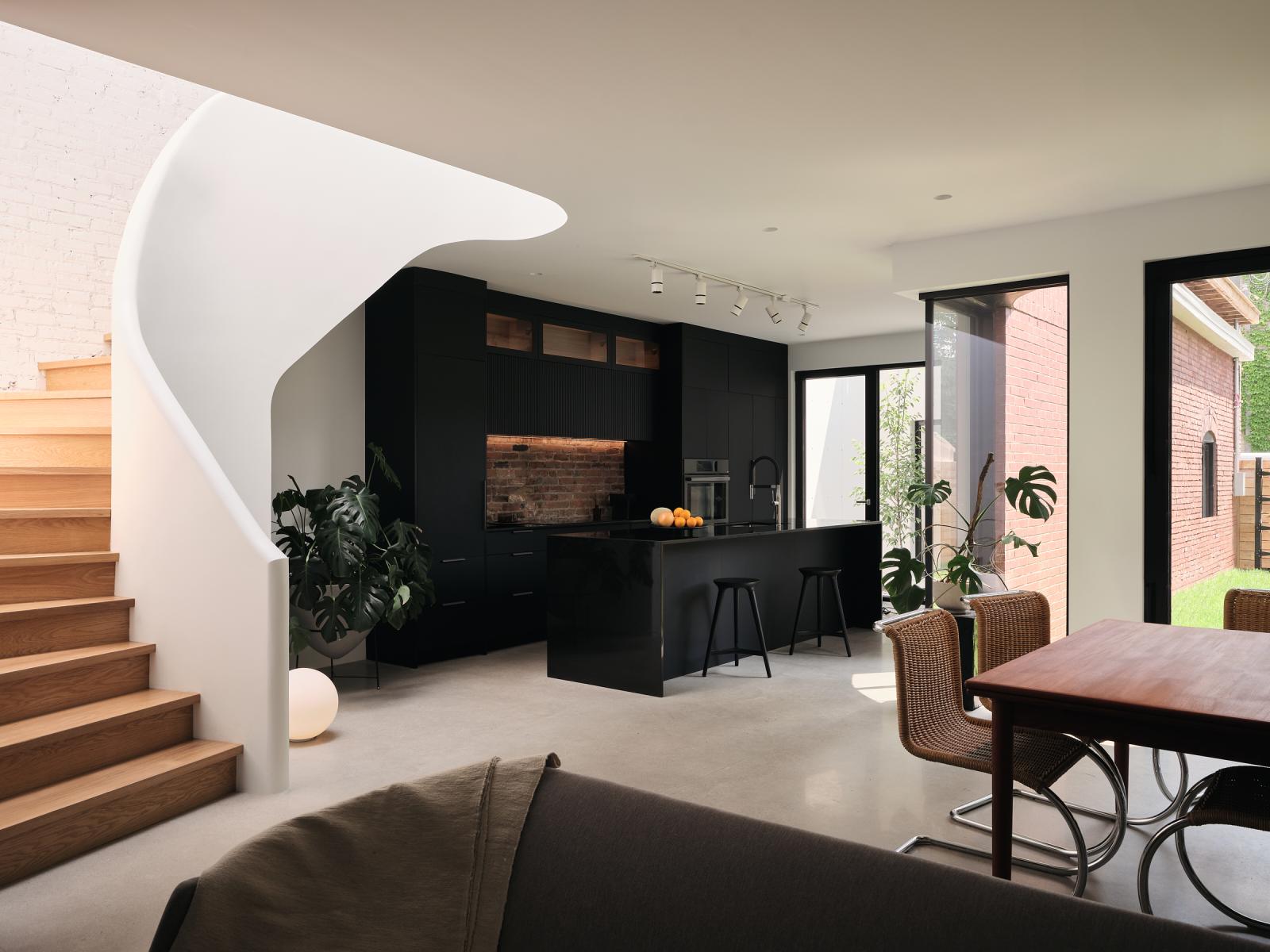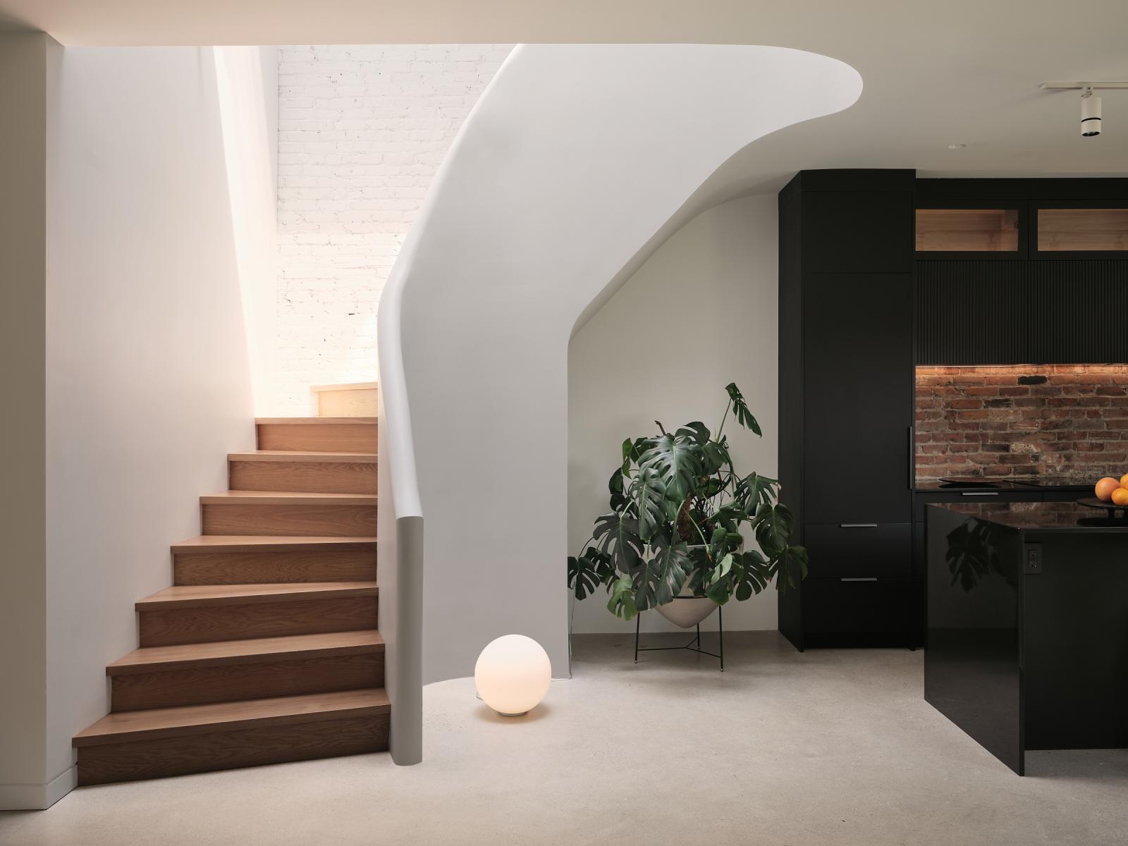 La résidence BNV s’inscrit dans le tissu dense du Plateau Mont-Royal avec une approche tout en retenue et en sensualité. Derrière sa façade discrète, le projet révèle un intérieur baigné de lumière, où les matières dialoguent dans une harmonie apaisante. Au cœur de cette composition un geste inattendu : un escalier sculptural, doux et organique, qui dépasse largement sa fonction.