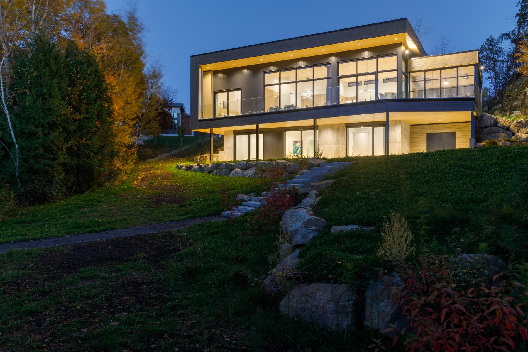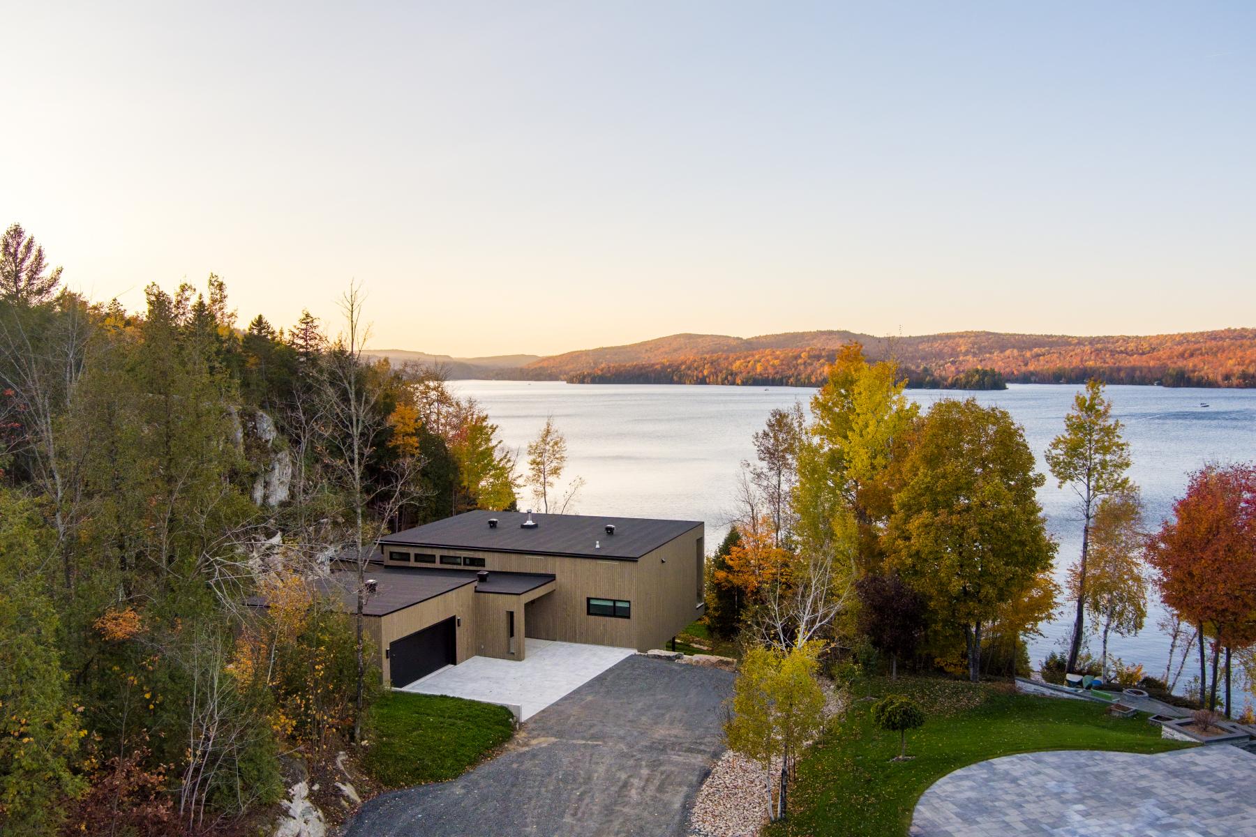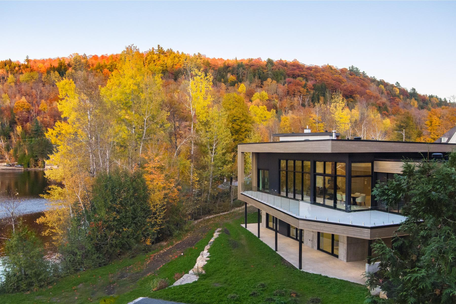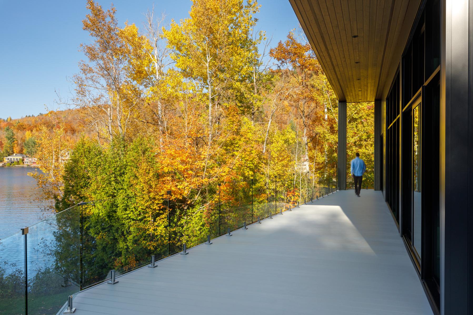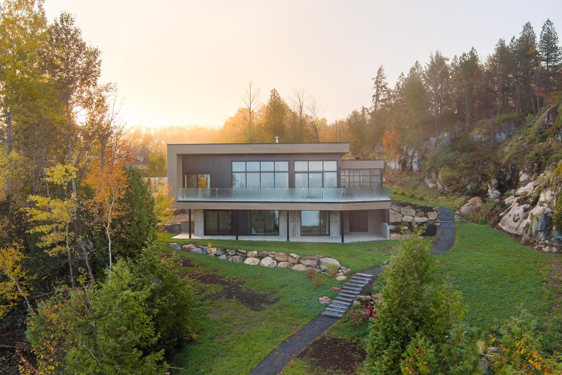 Nichée sur les rives du lac des Piles, situé dans la région de la Mauricie au Québec, la Résidence Lac-des-Piles prend racine sur un site qui aurait autrefois accueilli un hôtel de villégiature et dont il ne reste pour seul vestige qu’un quai de béton s’avançant dans l’eau. Le propriétaire, initialement installé à l’arrière du lot, a su saisir l’opportunité d’acquérir cet emplacement grandiose il y a plusieurs années, avec le souhait d’y construire éventuellement un projet d’exception qui profiterait du paysage majestueux et de l’accès direct au lac.
