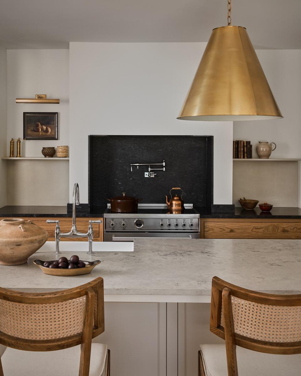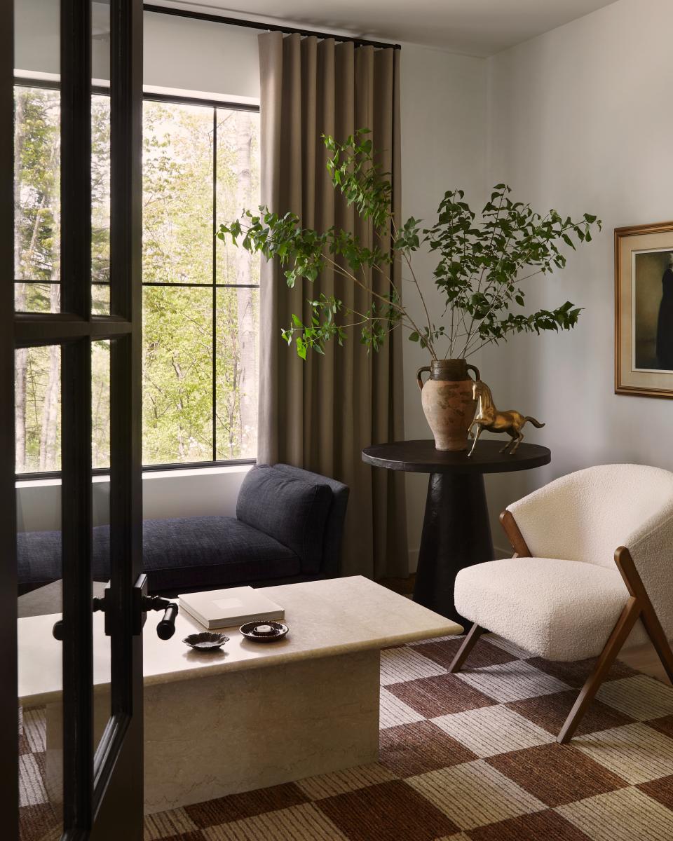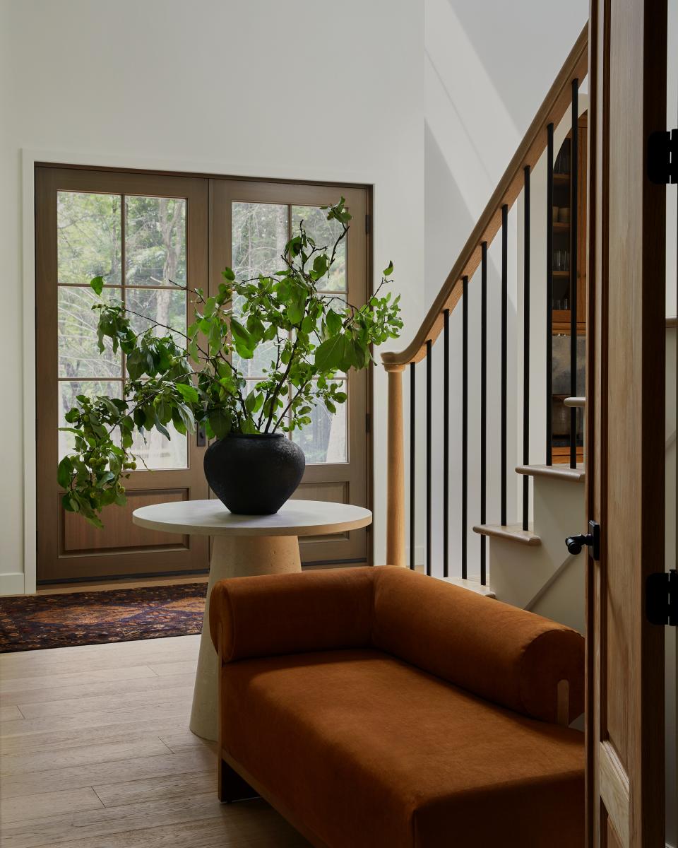 Ce dialogue constant avec l’extérieur guide l’ensemble de l’aménagement, où chaque élément a été pensé pour favoriser la sérénité et la chaleur. Les matières dominantes organiques — bois massif, pierre naturelle, béton, enduits à la chaux, textures riches mais neutres — insufflent une sensation d’équilibre et d’authenticité. La palette de tons terreux se décline dans des espaces fluides, lumineux et apaisants.