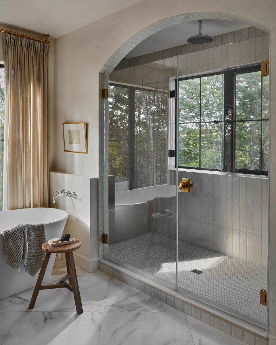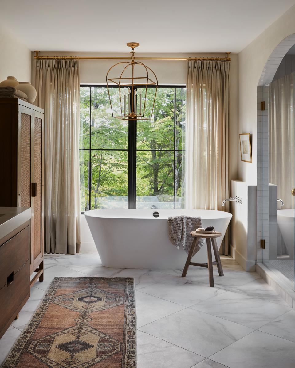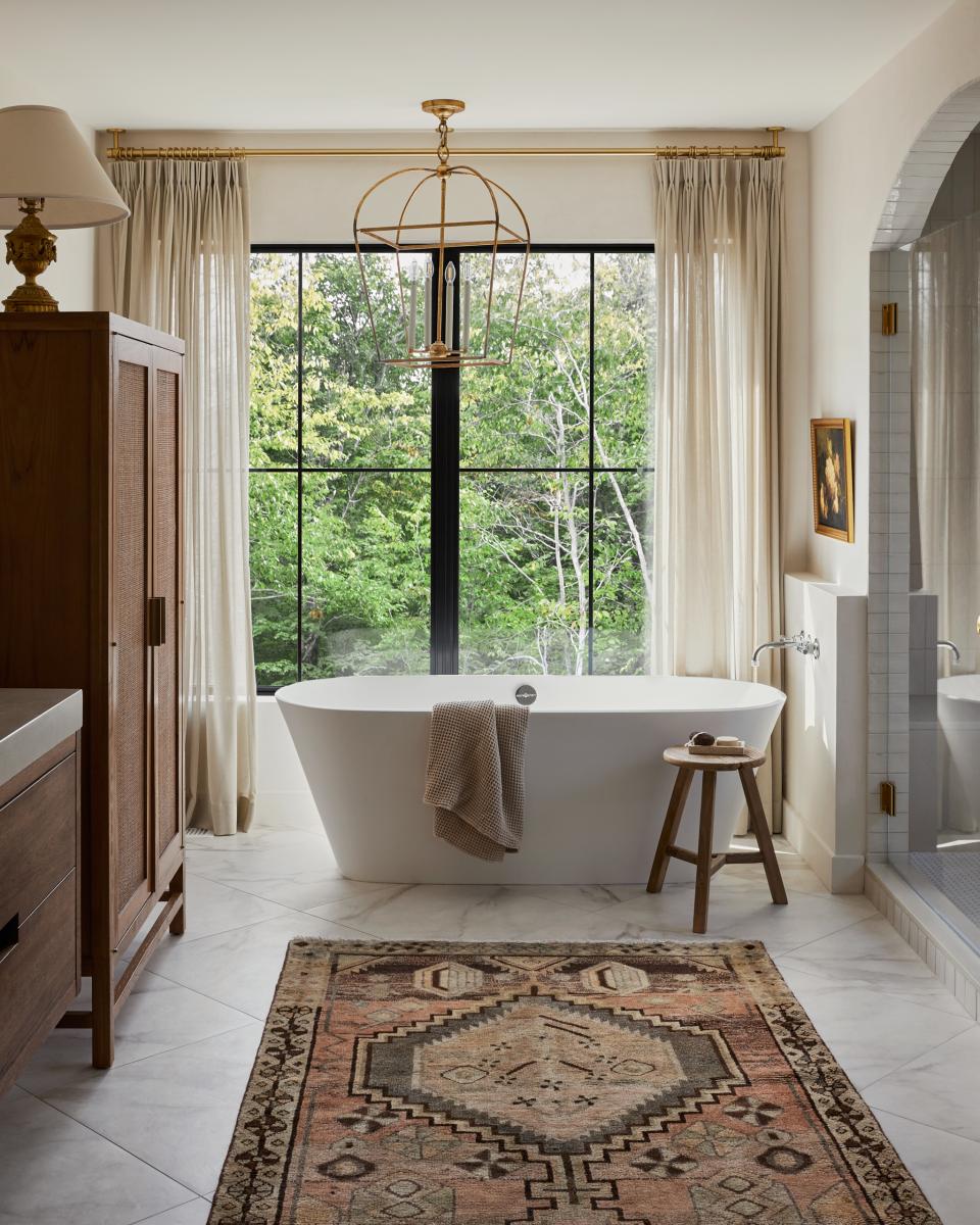 Ce dialogue constant avec l’extérieur guide l’ensemble de l’aménagement, où chaque élément a été pensé pour favoriser la sérénité et la chaleur. Les matières dominantes organiques — bois massif, pierre naturelle, béton, enduits à la chaux, textures riches mais neutres — insufflent une sensation d’équilibre et d’authenticité. La palette de tons terreux se décline dans des espaces fluides, lumineux et apaisants.