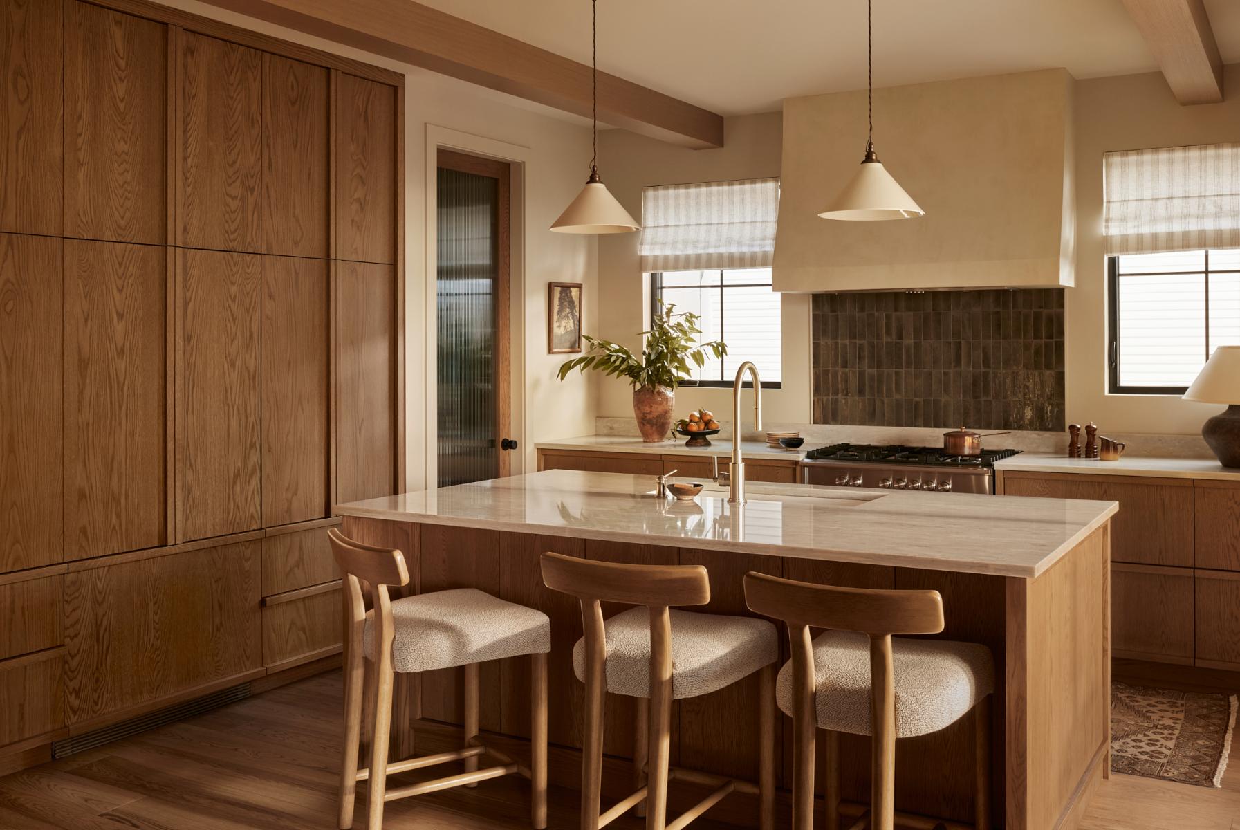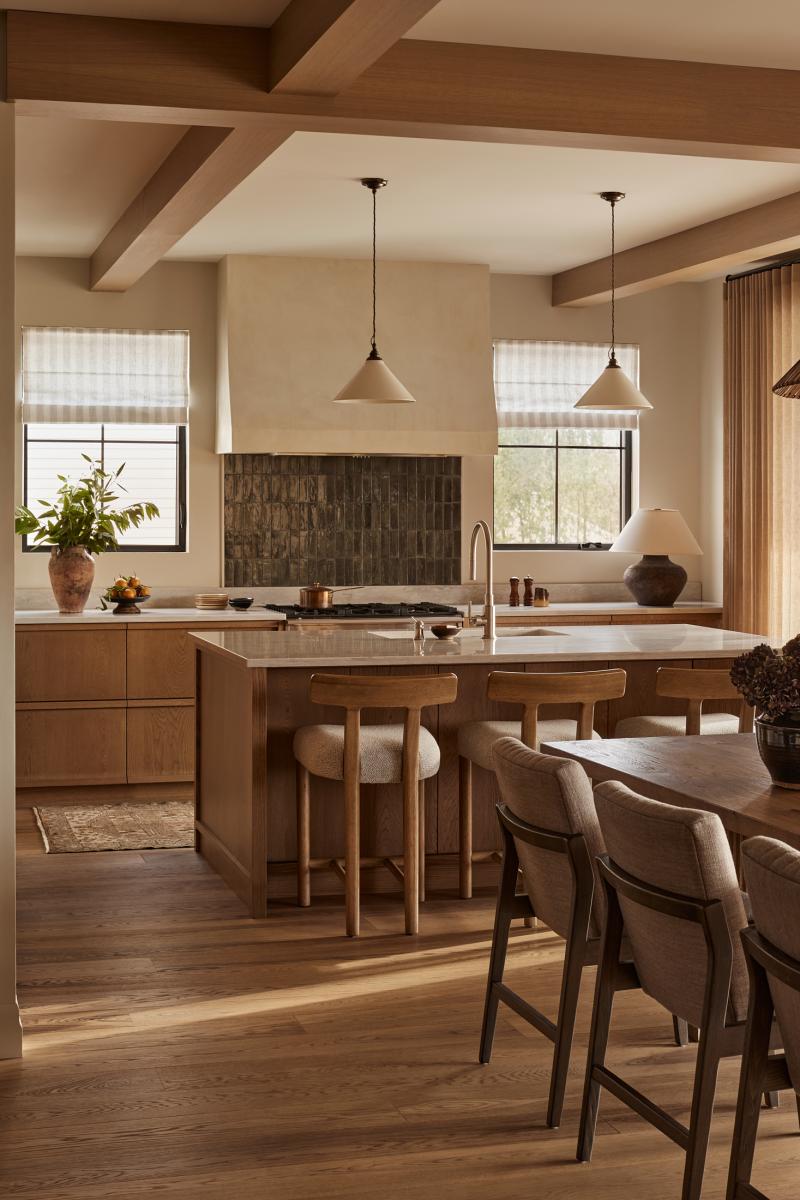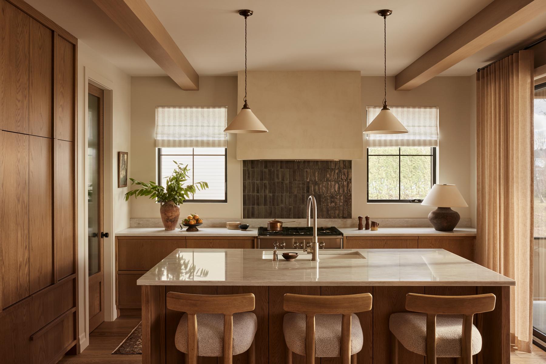 La matérialité joue un rôle central dans l’expérience sensorielle des lieux. La présence généreuse de bois naturel, les tons de terre et les textures tactiles soigneusement sélectionnées – telles que le lin, la peinture à la chaux et la brique – créent une ambiance enveloppante et raffinée.