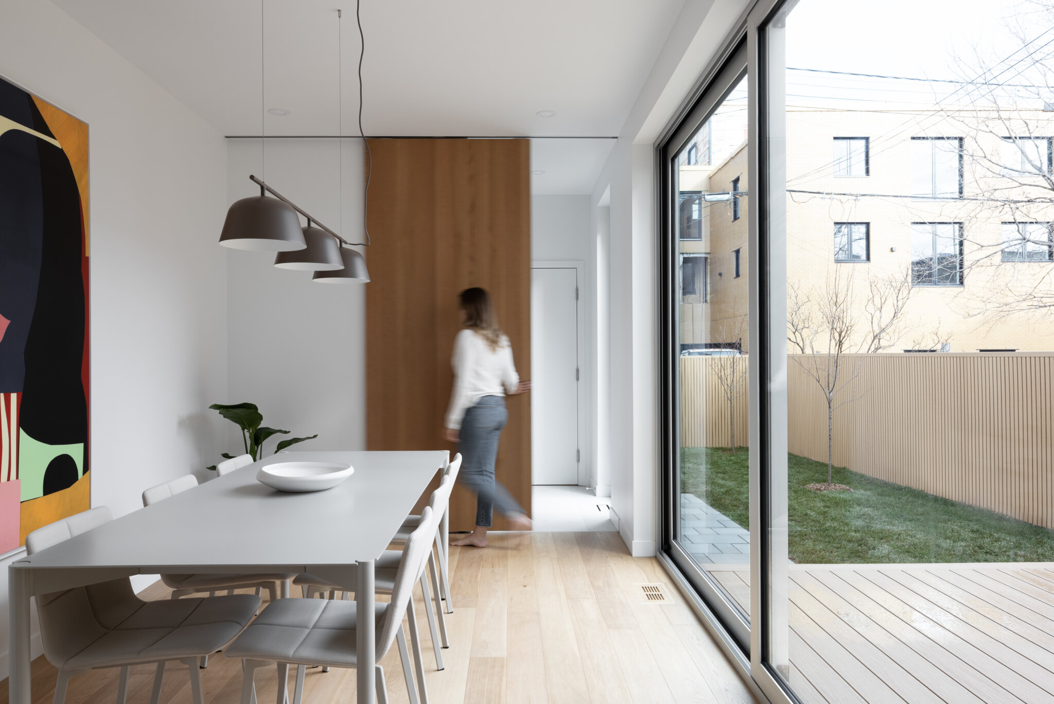 Le nouveau plan propose une configuration à aire ouverte qui englobe la cour arrière. Les grandes ouvertures permettent de dissimuler la barrière entre l’intérieur et l’extérieur.