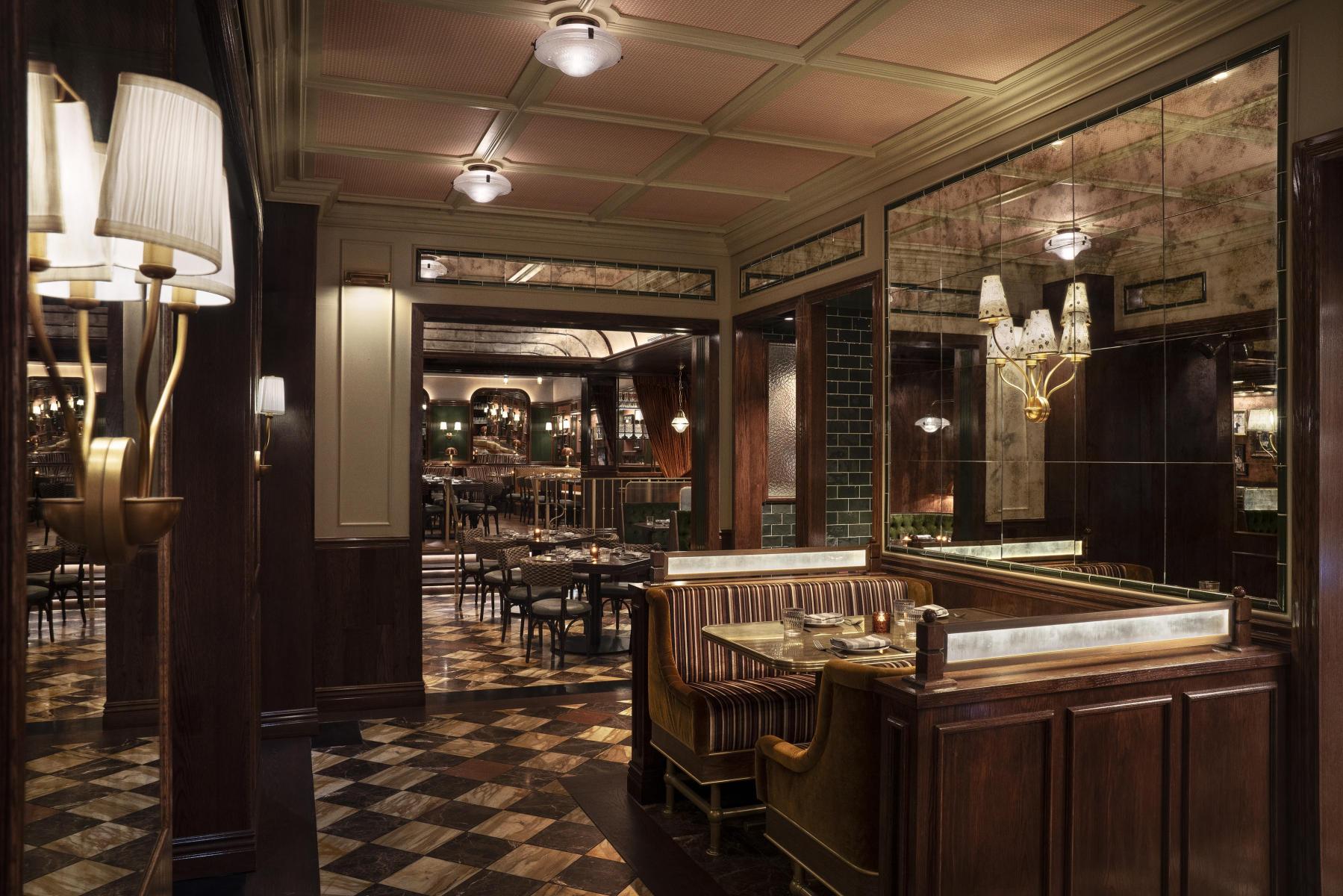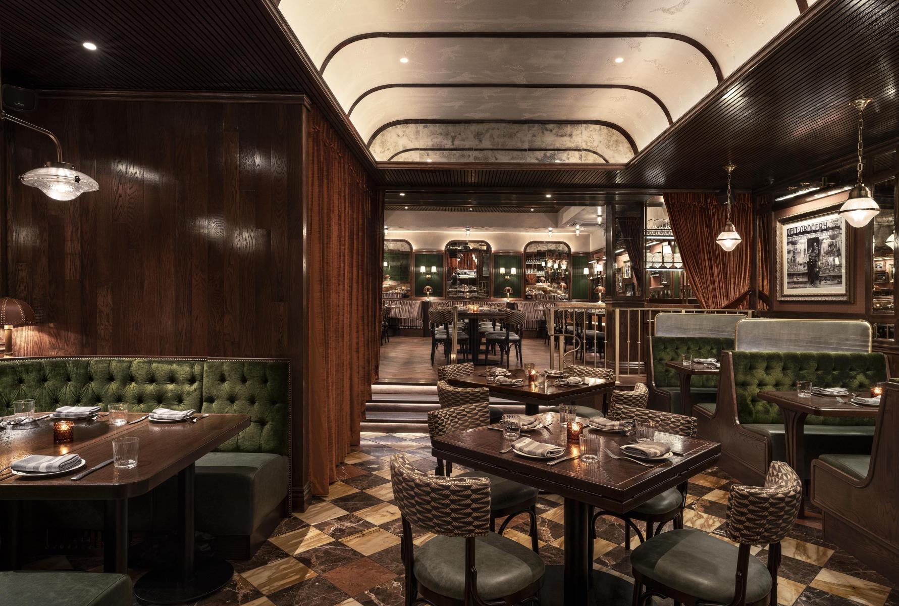 Le Corner Store est un hommage à un bar et restaurant classique de New York — ce pilier chaleureux et accueillant du quartier qui offre à la fois une patine d'histoire et donne l'impression qu'il a toujours été là, ainsi qu'un portail luxueux pour échapper à l'agitation de la ville. Un éclairage inspiré du vintage et chaleureux accentue la palette de matériaux éclectiques de laiton vieilli, de plâtre texturé, de carrelage en marbre à carreaux classique et de lambris en bois à haute brillance. Les espaces s'ouvrent progressivement, la chaleur intime cédant la place au frais et classique. Au nord, un patio couvert de verre est une salle à manger utilisable en toute saison qui peut s'ouvrir aux éléments pendant les mois les plus chauds.