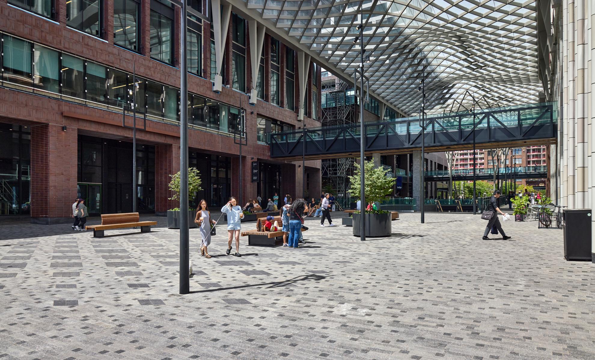 The Well intègre des programmes de bureau, de commerce de détail et résidentiels grâce à un ambitieux réseau piétonnier composé de places, de promenades et d’une galerie commerciale extérieure sur trois niveaux. Il comprend 1700 unités résidentielles réparties sur six bâtiments et une tour de bureaux. Plus de vingt mille utilisateurs quotidiens y sont attendus pour vivre, travailler, faire des achats et interagir.