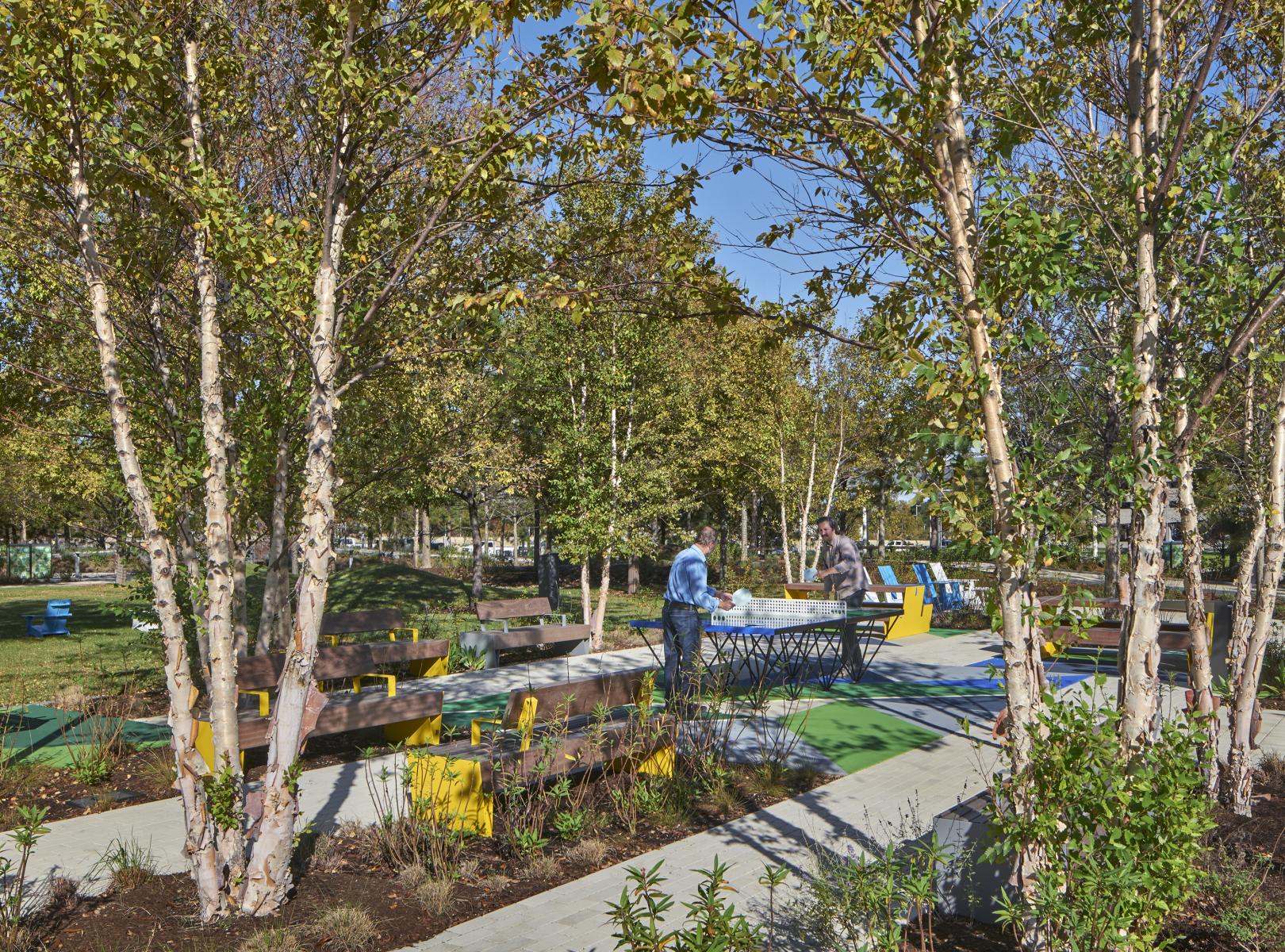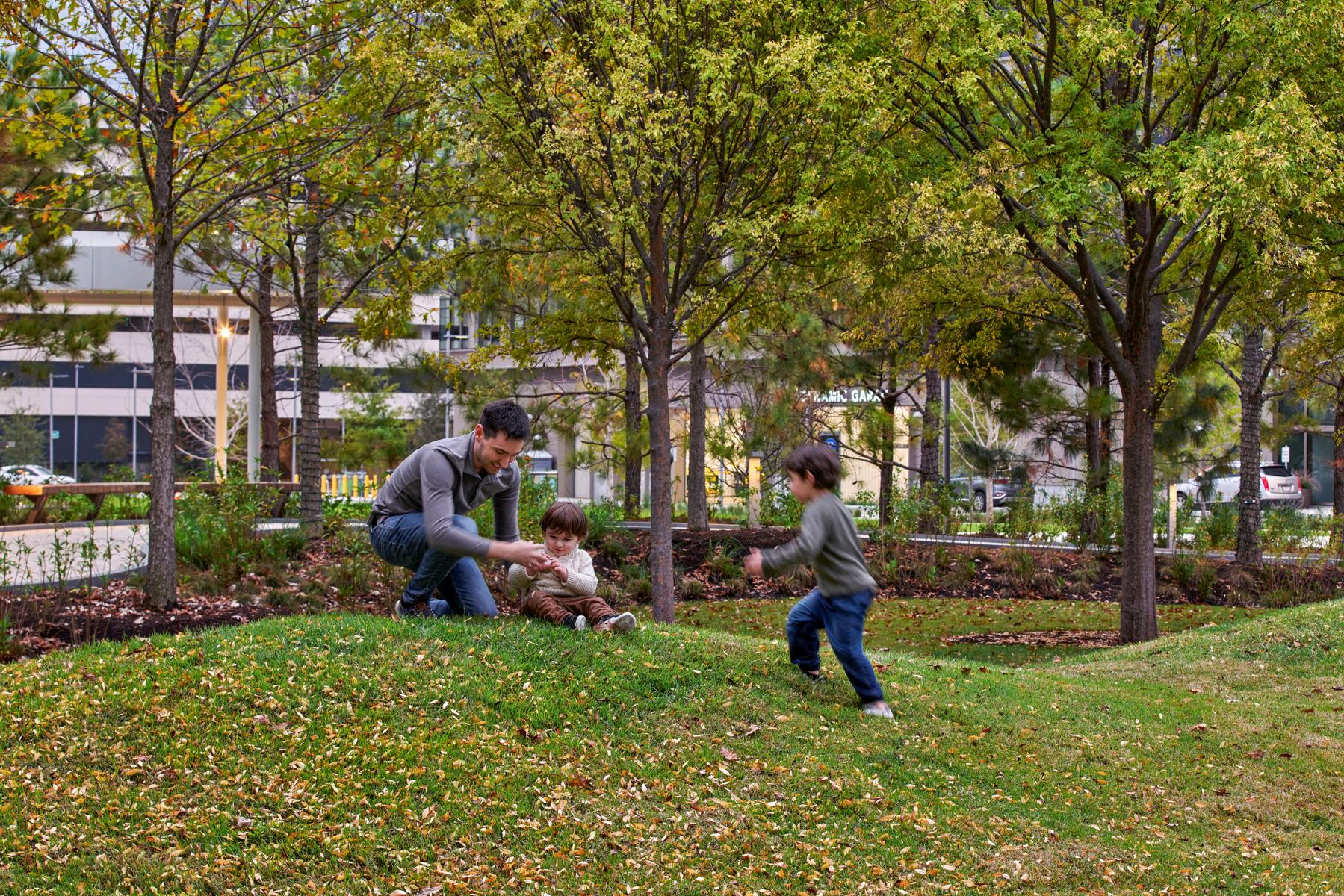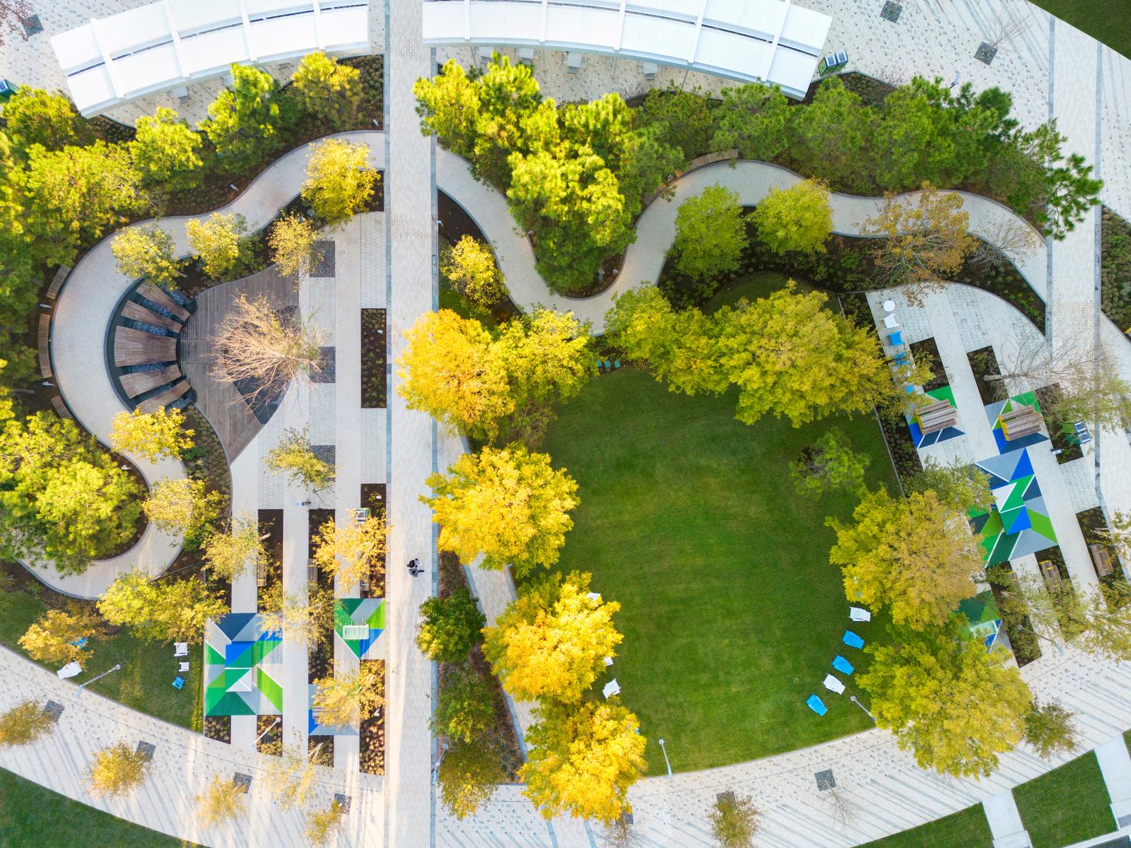 Au-delà de ses fonctions écologiques et sociales, le parc a catalysé un mélange de vie urbaine et de développement à usage mixte. La stratégie de connectivité du parc, axée sur les options multimodales, relie la ville à une programmation communautaire dynamique, incluant des performances hebdomadaires, des conférences et des cours de yoga. Cet espace piétonnier comprend des cascades interactives, des ruisseaux paisibles, une pelouse centrale et une aire de jeux active, le tout situé dans un jardin botanique biodiversifié, offrant une expérience riche et immersive pour tous.