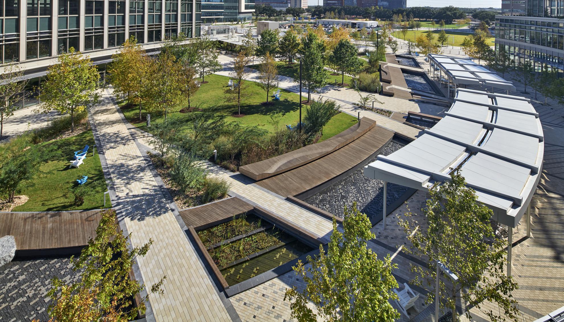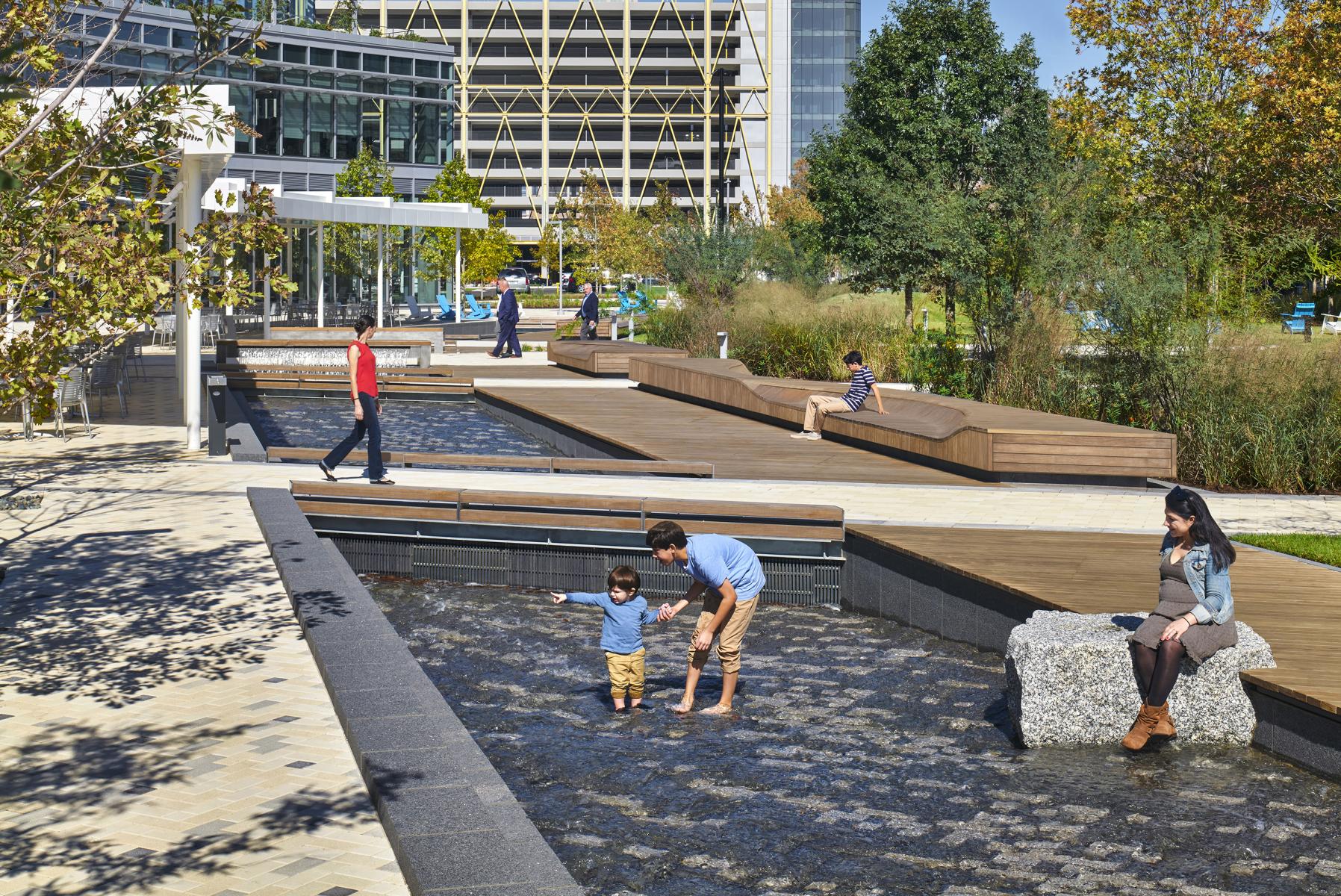 En réponse aux défis posés par le climat de Houston, le parc incorpore des éléments de design stratégiques pour contrer les conditions météorologiques extrêmes. Avec des températures moyennes montant à 92 °F et des niveaux d'humidité souvent entre 60 et 90 %, le parc intègre 69 400 pieds carrés de canopées ombragées et 380 000 pieds carrés de pavage perméable et frais pour atténuer la chaleur. Une variété de caractéristiques aquatiques refroidit en outre le paysage, offrant des expériences immersives tout en améliorant le confort.