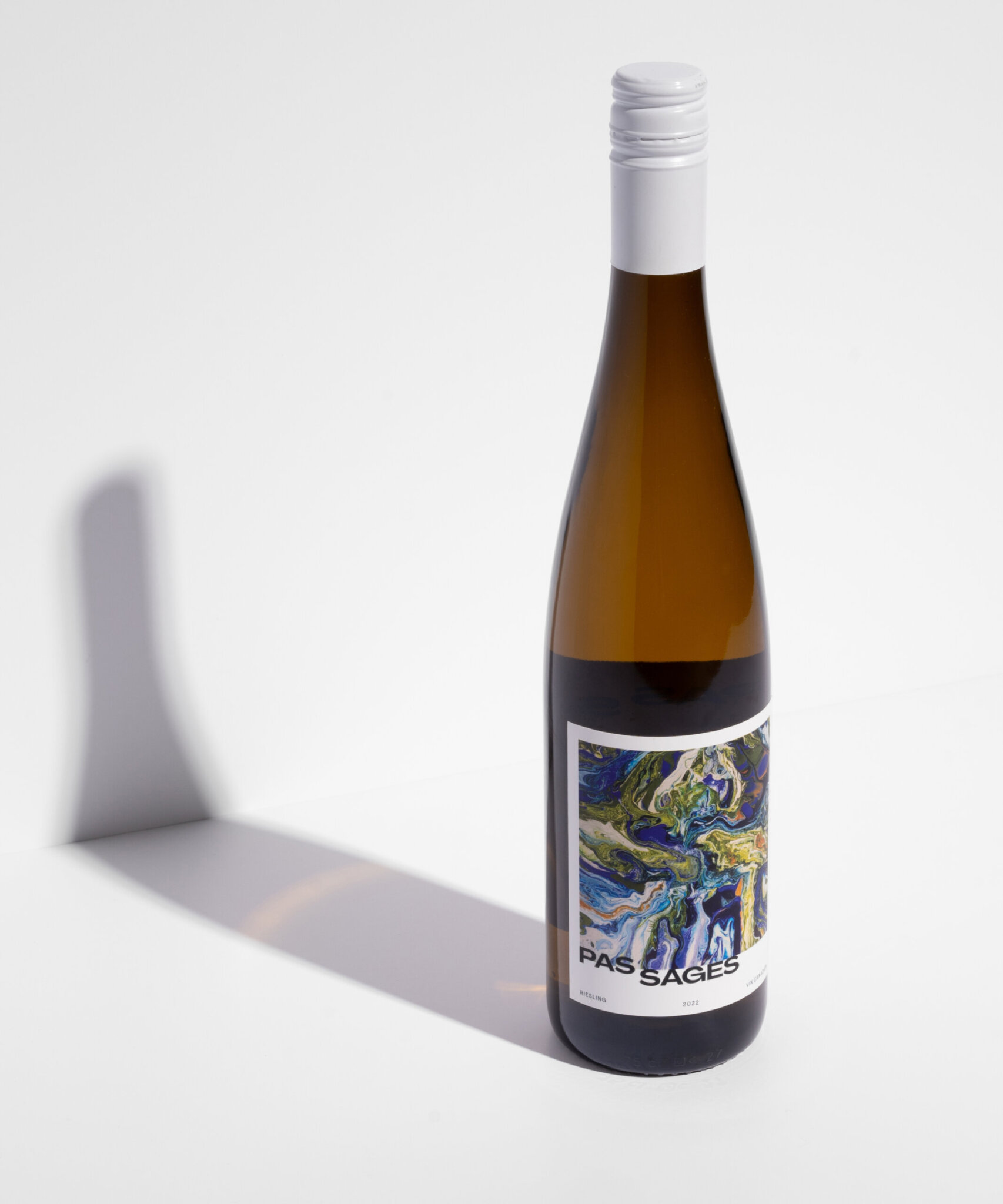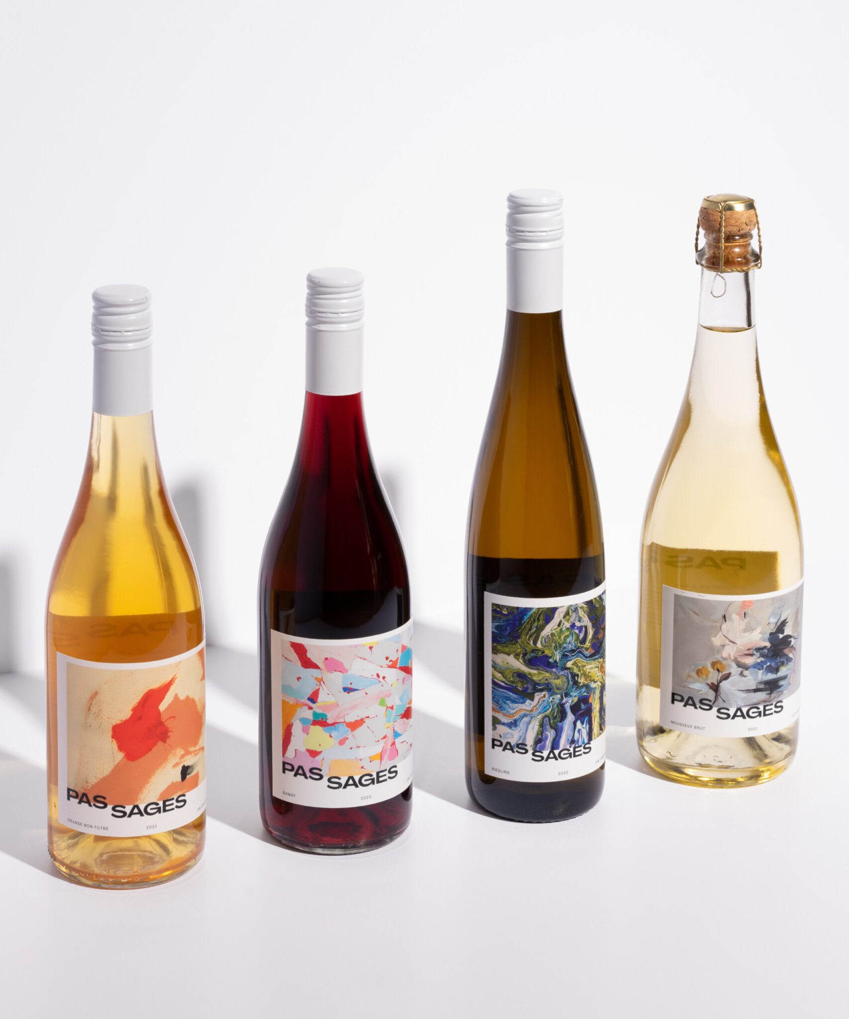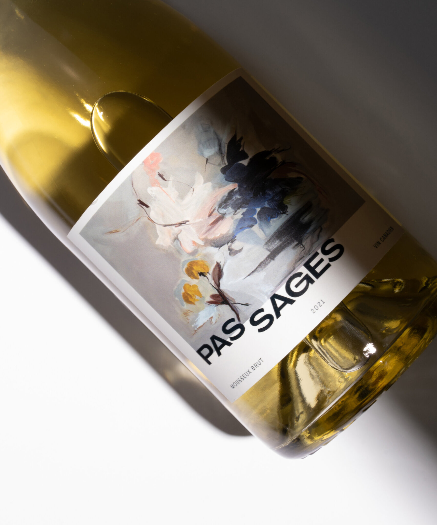 Le nom Pas Sages provient à la base des PASSAGES. Le nom est inspiré par l’eau, élément essentiel à la viniculture, évoquant les passages entre les lacs et les rivières pour faire référence à la géographie des lieux – soit les Grands Lacs. C’est aussi le passage du savoir-faire et de l’expertise entre les différents artisans impliqués dans l’élaboration d’un vin : vignerons, artistes, sommeliers, etc. Mais aussi de PAS SAGES. Un nom un tantinet rebelle, pour qui les plaisirs de la table passent par l’audace. Ces vins s’expriment à travers des œuvres d’artistes d’ici pour donner une âme bien de chez nous à ce produit d’exception.