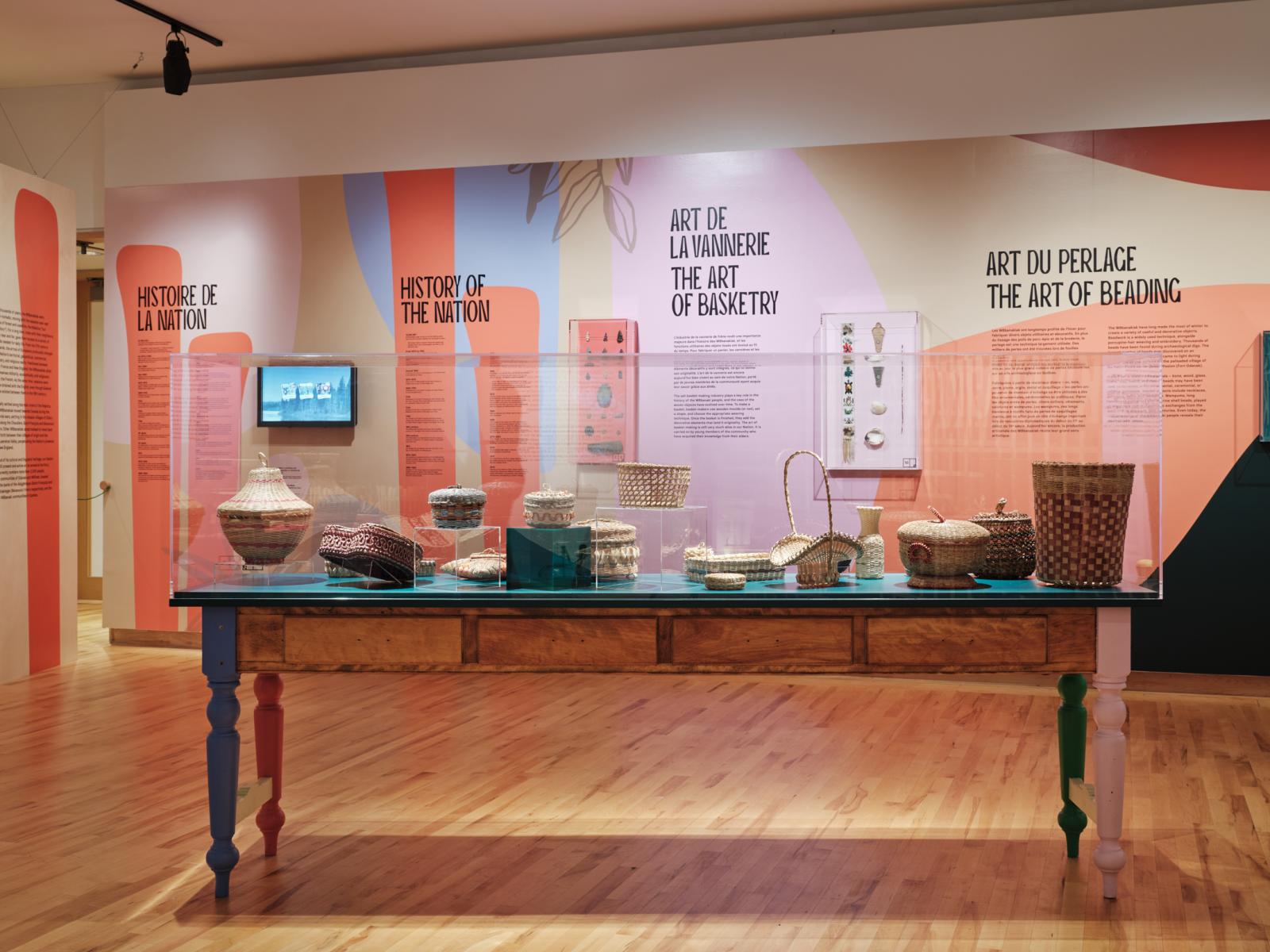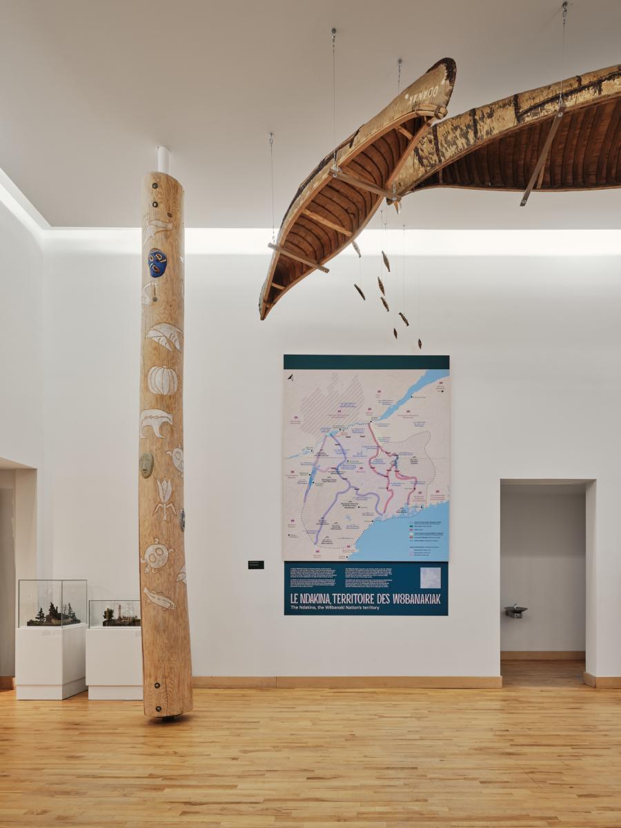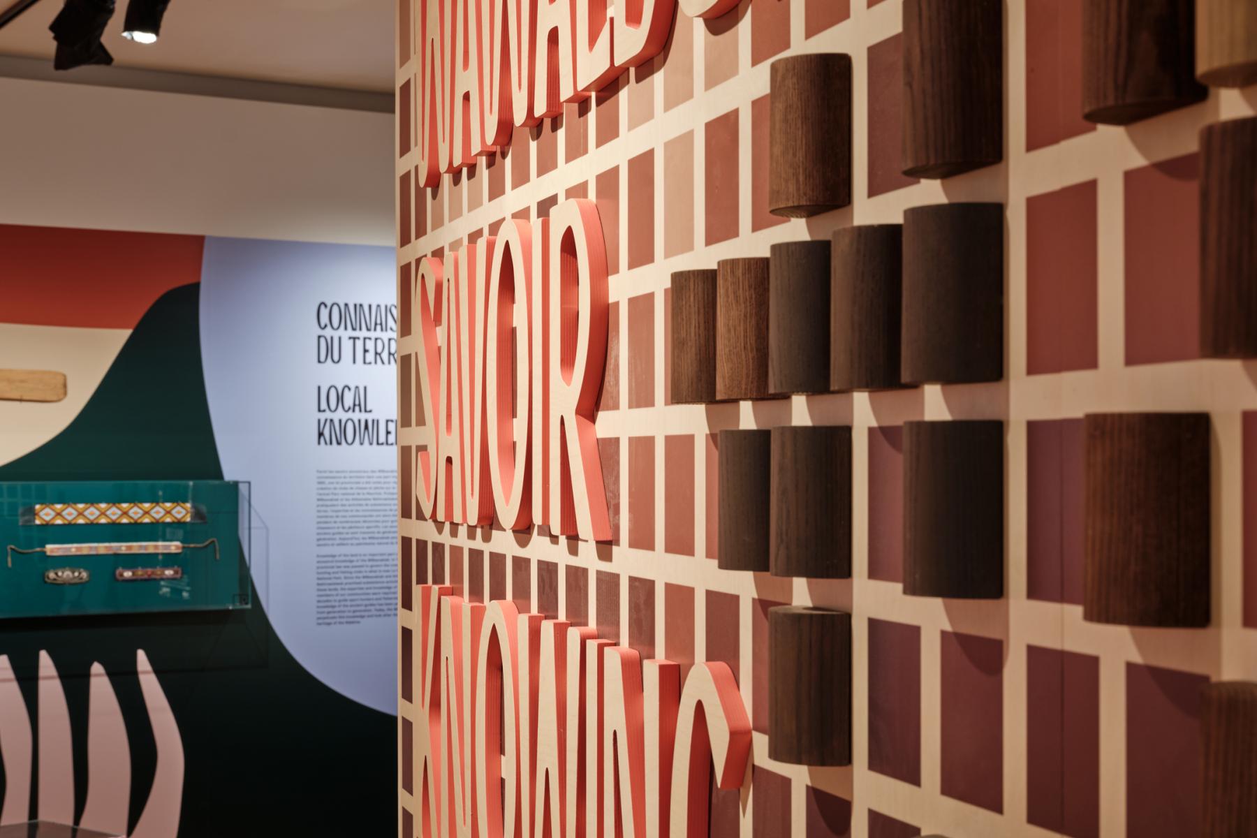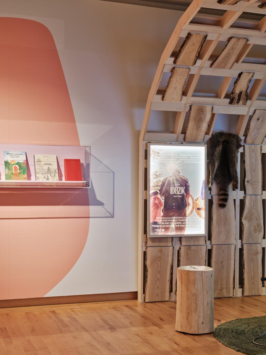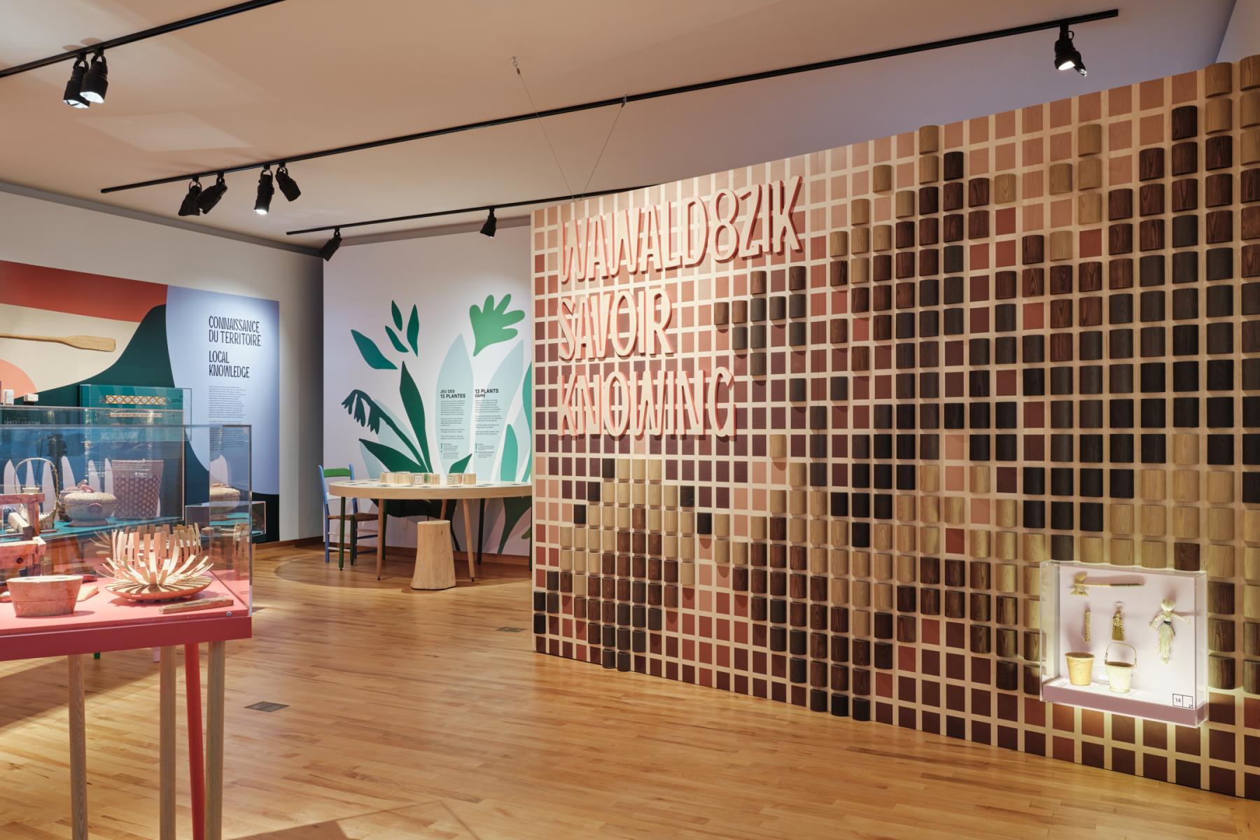 Soulignons qu’avant le démarrage du projet, un important processus de consultation, sous la forme d’ateliers de partage, avait eu lieu auprès des membres des communautés d’Odanak et de W8linak. Ce processus a permis de déterminer les lignes directrices envisagées pour la future exposition : objectifs, messages, fil conducteur, thèmes et objets significatifs. C’est sur la base de cette précieuse démarche que la firme a pu débuter son travail d’idéation en proche collaboration avec les personnes-ressources associées au projet (personnel du Musée, membres du C.A. et de la communauté).